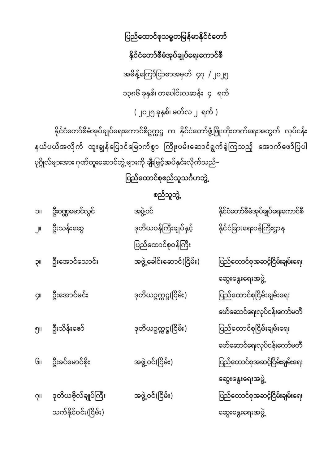 ဦးစီးဌာနနှင့် လုပ်ငန်းများ၏ ကြေညာချက်များ