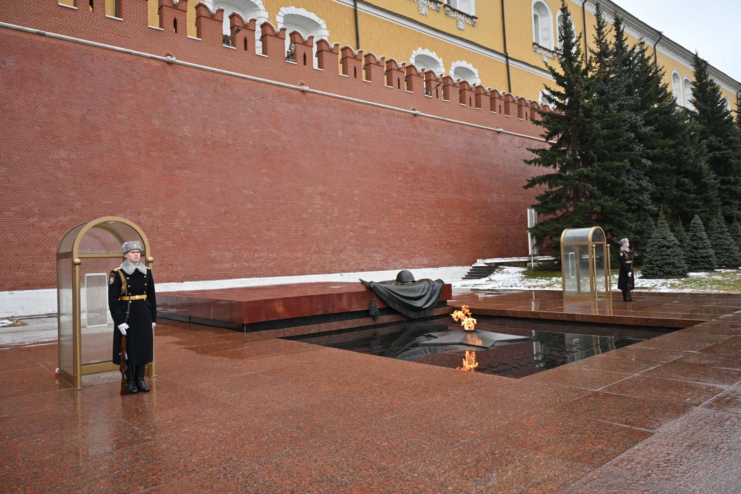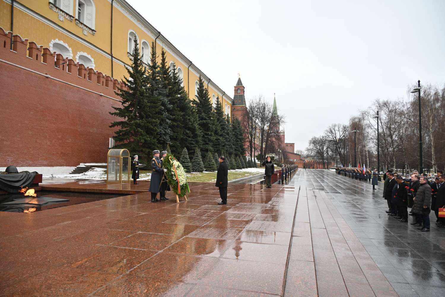 ရုရှားဖက်ဒရေးရှင်းနိုင်ငံ၊ မော်စကိုမြို့သို့ တရားဝင်ချစ်ကြည်ရေးခရီးရောက်ရှိနေသည့် နိုင်ငံတော်စီမံအုပ်ချုပ်ရေးကောင်စီဥက္ကဋ္ဌ နိုင်ငံတော်ဝန်ကြီးချုပ် ဗိုလ်ချုပ်မှူးကြီး မင်းအောင်လှိုင်သည် ယနေ့နံနက်ပိုင်းတွင် မော်စကိုမြို့ရှိ အညတရစစ်သည်ဂူဗိမာန်၌ လွမ်းသူပန်းခွေချအလေးပြုသည်။