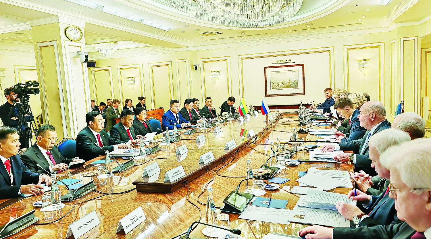 ထို့နောက် ဖက်ဒရယ်ကောင်စီလွှတ်တော်အစည်းအဝေးခန်းမ၌ တွေ့ဆုံပွဲကို ကျင်းပပြလုပ်၍ လွှတ်တော်နှစ်ရပ်အကြား ပူးပေါင်းဆောင်ရွက်ရေးဆိုင်ရာကိစ္စရပ်များ၊ နှစ်နိုင်ငံ သံတမန်ဆက်ဆံရေးဆိုင်ရာကိစ္စရပ်များ၊ အစိုးရအချင်းချင်း၊ နိုင်ငံအချင်းချင်း၊ ပြည်သူအချင်းချင်း ဆက်ဆံရေးတိုးတက်ကောင်းမွန်မှုအခြေအနေများ၊ လွှတ်တော်နှစ်ရပ်အကြား အပြန်အလှန်ပူးပေါင်းဆောင်ရွက်နိုင်မှုအခြေအနေများ၊ နှစ်နိုင်ငံအကြား ဆက်ဆံရေးနှင့် ပူးပေါင်းဆောင်ရွက်မှုများ ဆက်လက်တိုးမြှင့်ဆောင်ရွက်သွားမည့် အခြေအနေများ၊ လွှတ်တော်နှစ်ရပ်အကြား ချစ်ကြည်ရေးခရီးစဉ်များ အပြန်အလှန် သွားရောက်ရေးဆိုင်ရာကိစ္စရပ်များ၊ နိုင်ငံတော်စီမံအုပ်ချုပ်ရေးကောင်စီအနေဖြင့် လွတ်လပ်ပြီးတရားမျှတသည့် ပါတီစုံဒီမိုကရေစီအထွေထွေရွေးကောက်ပွဲကျင်းပနိုင် ရေးကြိုတင်ပြင်ဆင်ဆောင်ရွက်လျက်ရှိမှုအခြေနေများ၊ မြန်မာနိုင်ငံတွင်ရွေးကောက်ပွဲကျင်းပချိန်၌ ရုရှားဖက်ဒရေးရှင်းနိုင်ငံ ဖက်ဒရယ်ကောင်စီလွှတ်တော်မှ လေ့လာရေးအဖွဲ့များ စေလွှတ်ပေးသွားမည့်အခြေအနေများ၊ မြန်မာနိုင်ငံ၌ လွှတ်တော်ပြန်လည်ဖွဲ့စည်းပြီးချိန်၌ လွှတ်တော်နှစ်ရပ်အကြားဆက်ဆံရေးကို ပိုမိုတိုးမြှင့်ဆောင်ရွက်သွားမည့် အခြေအနေများနှင့်ပတ်သက်၍ ရင်းနှီးပွင့်လင်းစွာဖြင့် အမြင်ချင်းဖလှယ်ဆွေးနွေးကြသည်။