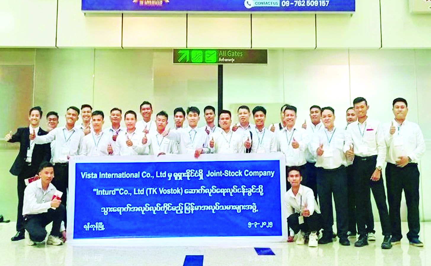 မြန်မာလုပ်သားများအတွက် အလုပ်အကိုင်အခွင့်အလမ်းများ ရရှိစေနိုင်ရန်နှင့် လုပ်ခလစာပိုမိုကောင်းမွန်သည့် နိုင်ငံများသို့ လုပ်သားစေလွှတ်ခြင်းဖြင့် လုပ်သားဈေးကွက် တိုးချဲ့ရှာဖွေနိုင်ရန်အတွက် ရုရှားဖက်ဒရေးရှင်းနိုင်ငံသို့ Pilot Project ဖြင့် စေလွှတ်နိုင်ရေးစီစဉ်ဆောင်ရွက်ခဲ့ရာ ပြည်ပအလုပ်အကိုင်အကျိုးဆောင် လိုင်စင်ရအေဂျင်စီဖြစ်သည့် Vista International Co.,Ltd ၏ အစီအစဉ်ဖြင့် ရုရှားဖက်ဒရေးရှင်းနိုင်ငံ Joint-Stock Company ‘Inturd’ Co., Ltd သို့ ကျွမ်းကျင်မြန်မာလုပ်သား ၅၄ ဦးအနက် ကနဦးအစီအစဉ်ဖြင့် လုပ်သား ၂၄ ဦးအား Pilot Project စေလွှတ်နိုင်ရေးအတွက် ဖေဖော်ဝါရီ ၂၈ ရက်တွင် အလုပ်ရှင်၊ အလုပ်သမားအလုပ်ခန့်ထားမှုဆိုင်ရာ သဘောတူစာချုပ်ချုပ်ဆိုခြင်း၊ မတ် ၃ ရက်တွင် ပြည်ပအလုပ်အကိုင်လမ်းညွှန်သင်တန်း သင်ကြားပို့ချခြင်းနှင့် ပြည်ပအလုပ်အကိုင် အလုပ်သမားသက်သေခံကတ် (OWIC) ပြုလုပ်ပေးခြင်းများကို လုပ်ထုံးလုပ်နည်းများနှင့်အညီ ဆောင်ရွက်ပေးခဲ့ပြီး ယနေ့တွင် ရုရှားဖက်ဒရေးရှင်းနိုင်ငံသို့ Pilot Project အဖြစ် စနစ်တကျစေလွှတ်နိုင်ခဲ့သည်။