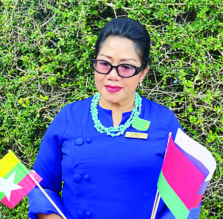 ကျွန်မတို့သဘင်အစည်းအရုံးအနေနဲ့ မြန်မာ-ရုရှားချစ်ကြည်ရေး အဓွန့်ရှည်တည်တံ့ခိုင်မြဲပါစေလို့ ဆုမွန်ခြွေဖို့ ရောက်ရှိလာခြင်းဖြစ်ပါတယ်။ ကျွန်မတို့အနေနဲ့ နိုင်ငံတော်ဝန်ကြီးချုပ်ကြီးရဲ့ခရီးစဉ်တွေကို ရုပ်မြင်သံကြားကနေ ကြည့်ဖြစ်ခဲ့ပါတယ်။ ဖွံ့ဖြိုးတိုးတက်မှုအတွက် နိုင်ငံသားတစ်ယောက်အနေနဲ့ အံ့ဩဝမ်းသာမိပါတယ်။ ဂုဏ်ယူစရာလည်းဖြစ်ပါတယ်။ ဒါကြောင့် သဘင်အစည်းအရုံးမိသားစုတွေအနေနဲ့ ဂုဏ်ပြုကြိုဆိုကြဖို့ ကြိုးစားပြီး လာရောက်ကြခြင်းဖြစ်ပါတယ်။ နိုင်ငံတော်ဝန်ကြီးချုပ်ကြီးနဲ့ တာဝန်ရှိသူတွေအားလုံးကိုလည်း ကျေးဇူးတင်ရှိပါတယ်။