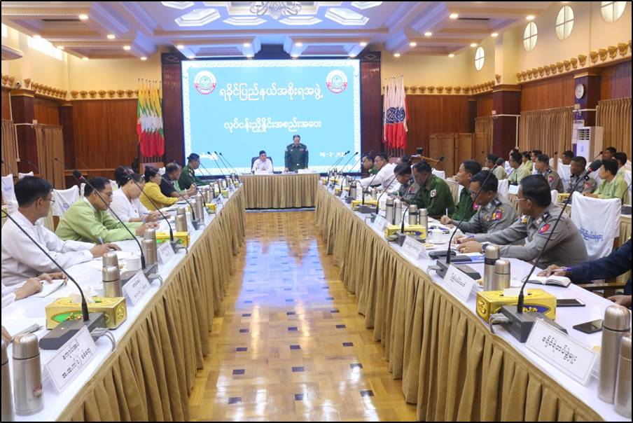 ၂၀၂၄-၂၀၂၅ ပညာသင်နှစ် တက္ကသိုလ်ဝင်တန်းစာမေးပွဲ အောင်မြင်စွာကျင်းပနိုင်ရေးနှင့် ကျောင်းသား၊ ကျောင်းသူများ စိတ်အေးချမ်းသာစွာဖြင့်ဖြေဆိုနိုင်ရေး လုပ်ငန်းညှိနှိုင်းအစည်းအဝေးများကို ယနေ့တွင် ရှမ်းပြည်နယ်၊ မွန်ပြည်နယ်၊ တနင်္သာရီတိုင်းဒေသကြီး၊ ရန်ကုန်တိုင်းဒေသကြီး၊ ရခိုင်ပြည်နယ်၊ မန္တလေးတိုင်းဒေသကြီးနှင့် ပဲခူးတိုင်းဒေသကြီးတို့ရှိတိုင်းဒေသကြီးနှင့် ပြည်နယ်အစိုးရအဖွဲ့ရုံး အစည်းအဝေးခန်းမများ၌ ကျင်းပပြုလုပ်ကြရာ သက်ဆိုင်ရာ တိုင်းဒေသကြီးနှင့်ပြည်နယ်များမှ ဝန်ကြီးချုပ်များ၊ တိုင်းမှူးများနှင့် ဌာနဆိုင်ရာတာဝန်ရှိသူများ၊ ဖိတ်ကြားထားသူများတက်ရောက်ကြပြီး အရှေ့မြောက်တိုင်းစစ်ဌာနချုပ်၊ အရှေ့အလယ်ပိုင်းတိုင်းစစ်ဌာနချုပ်၊ တြိဂံဒေသတိုင်းစစ်ဌာနချုပ်တို့မှ တိုင်းမှူးများနှင့် ဌာနဆိုင်ရာတာဝန်ရှိသူများက ဗွီဒီယိုကွန်ဖရင့်စနစ်ဖြင့် တက်ရောက်ကြသည်။