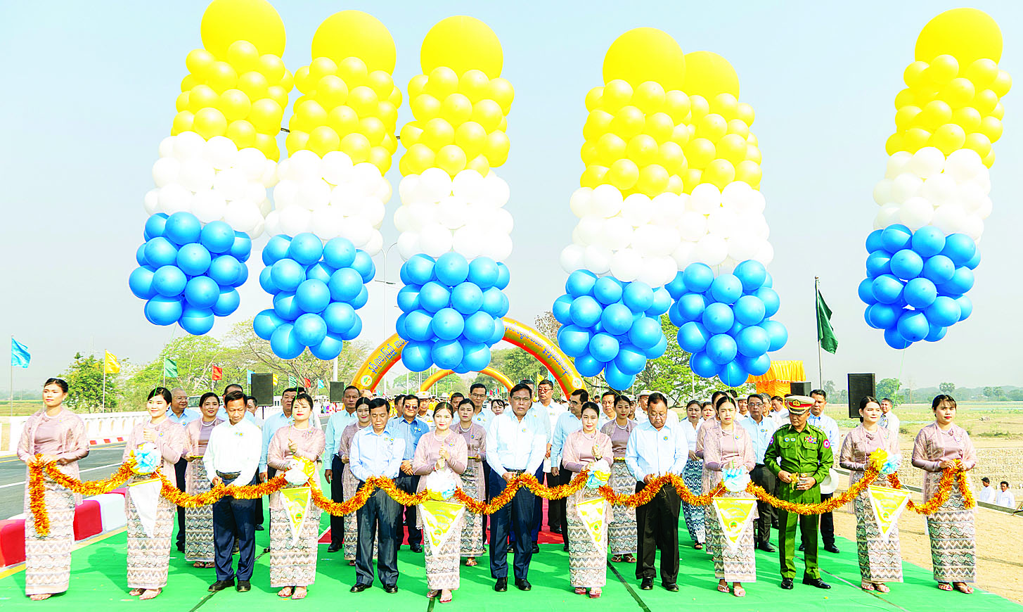 ထို့နောက် ပြည်ထောင်စုဝန်ကြီးနှင့် နေပြည်တော်ကောင်စီဥက္ကဋ္ဌတို့သည် အခမ်းအနားတက်ရောက်လာသူများနှင့်အတူ စုပေါင်းမှတ်တမ်းတင်ဓာတ်ပုံရိုက်၍ တိုးချဲ့တည်ဆောက်ထားသည့် တံတားအသစ်ကြီးပေါ်မှ ဖြတ်သန်းကြည့်ရှုစစ်ဆေးသည်။