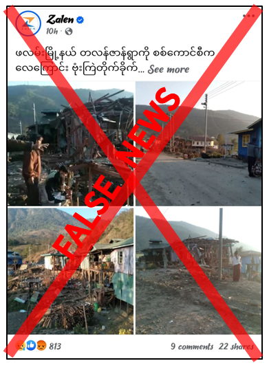 ဖလမ်းမြို့နယ်တွင် လုံခြုံရေးတပ်ဖွဲ့ဝင်များက လေကြောင်းတိုက်ခိုက်မှုကြောင့် ဘုရားကျောင်းနှင့် အဆောက်အအုံများပျက်စီးခဲ့ဟု မဟုတ်မမှန်လုပ်ကြံဝါဒဖြန့်ချိ