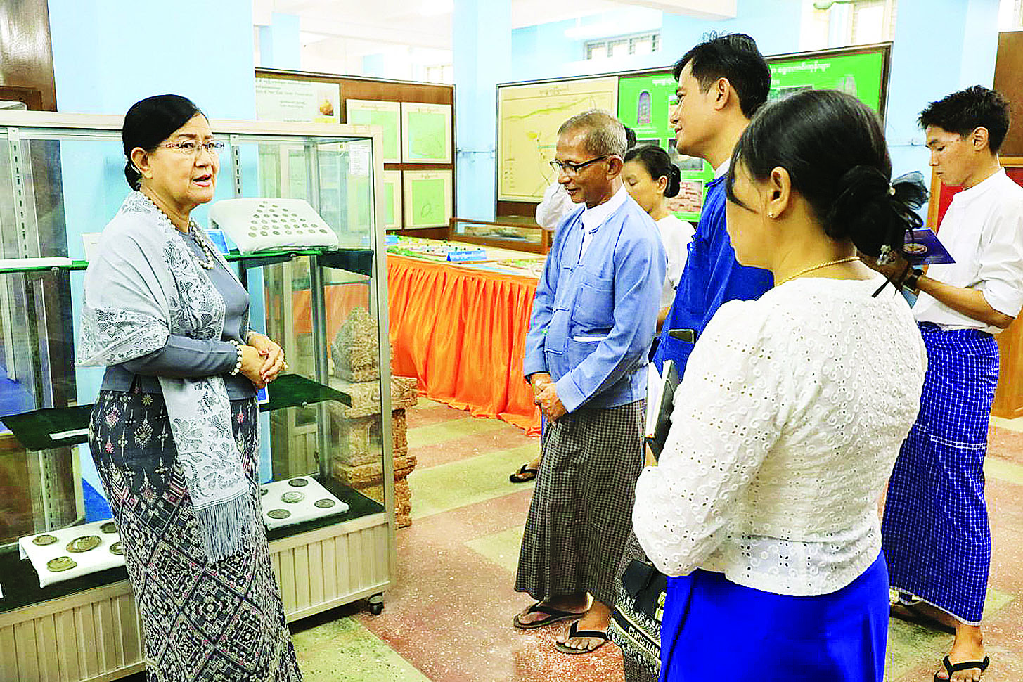 သာသနာရေးနှင့် ယဉ်ကျေးမှုဝန်ကြီးဌာန ဒုတိယဝန်ကြီး ဒေါ်နုမြဇံသည် ယနေ့မွန်းလွဲပိုင်းတွင် မွန်ပြည်နယ် ယဉ်ကျေးမှုပြတိုက် (မော်လမြိုင်) သို့ရောက်ရှိပြီး ပြတိုက်၌ ခင်းကျင်းပြသထားသော မြန်မာ့သမိုင်းကြောင်းပြခန်း၊ သဘာဝပေါက်ပင်နှင့် ဒေသတွင်း ကျေးငှက်တိရစ္ဆာန်ပြခန်း၊ မွန်ရိုးရာ ဓလေ့ထုံးစံများပြခန်း၊ လက်မှုအနုပညာလုပ်ငန်းများပြခန်း၊ မွန်စာပေပြခန်း၊ မွန်တူရိယာများပြခန်း၊ ဒေသတွင်း ထူးခြားထင်ရှားသူများပြခန်း စသည့်ပြခန်းများကို လိုက်လံကြည့်ရှုစစ်ဆေးသည်။