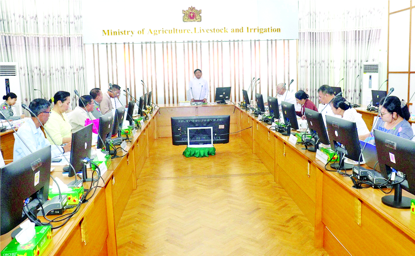 မြေဩဇာကော်မတီ၏ (၄၄) ကြိမ်မြောက် အစည်းအဝေးကို ယနေ့နံနက်ပိုင်းက စိုက်ပျိုးရေး၊ မွေးမြူရေးနှင့်ဆည်မြောင်းဝန်ကြီးဌာန ပြည်ထောင်စုဝန်ကြီးရုံးအစည်းအဝေးခန်းမ၌ ကျင်းပရာ မြေဩဇာကော်မတီဥက္ကဋ္ဌ ဒုတိယဝန်ကြီး ဒေါက်တာတင်ထွဋ်နှင့် ကော်မတီဝင်များ၊ မြေဩဇာကျွမ်းကျင်ပညာရှင်များ တက်ရောက်ကြသည်။