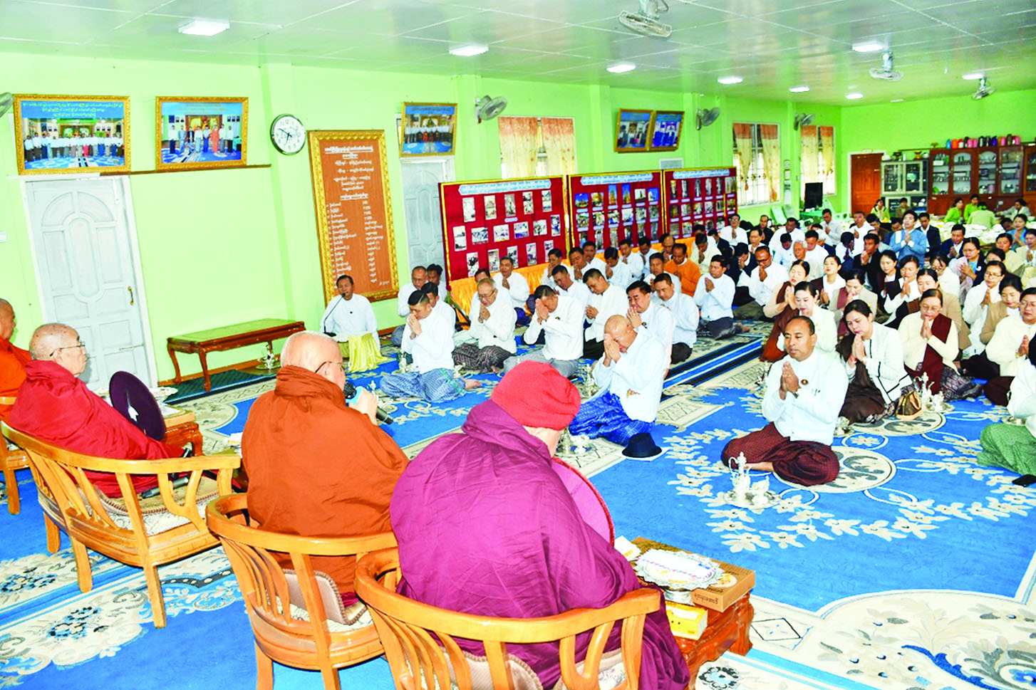 ဦးစွာ ပြည်နယ်ဝန်ကြီးချုပ်၊ တိုင်းမှူးနှင့်တက်ရောက်လာကြသူများက သံဃာတော်များအား အရုဏ်ဆွမ်း ဆက်ကပ်လှူဒါန်းကြသည်။ ထို့နောက် ပြည်နယ်ဝန်ကြီးချုပ်၊ တိုင်းမှူးနှင့် တက်ရောက်လာကြသူများက နိုင်ငံတော်ဩဝါဒါစရိယ တောင်ကြီးမြို့ စွန်းလွန်းဂူကမ္မဋ္ဌာန်းကျောင်းတိုက် ဦးစီးပဓာနနာယကဆရာတော်ထံမှ ငါးပါးသီလ ခံယူဆောက်တည်ကြပြီး သံဃာတော်များ ရွတ်ပွားချီးမြှင့် တော်မူသည့် ပရိတ်တရားတော်များကို နာယူကြည်ညိုကြသည်။