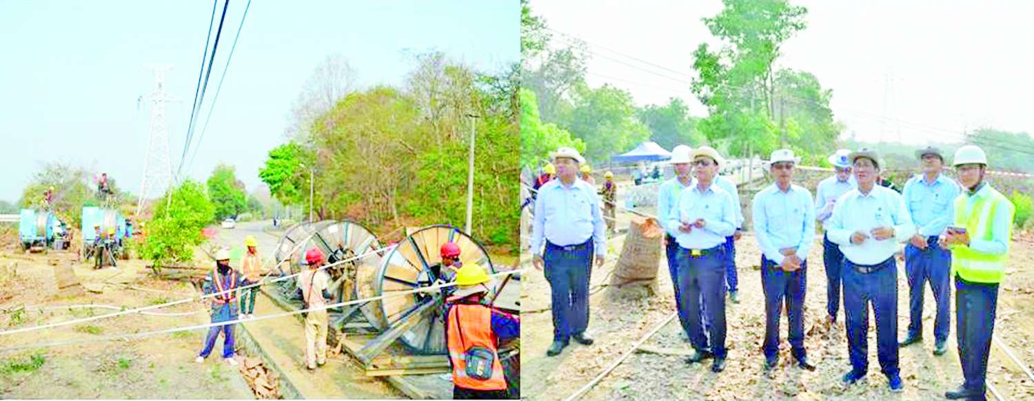 ဦးစွာ ပြည်ထောင်စုဝန်ကြီးသည် လုပ်ငန်းခွင်အတွင်း ဓာတ်အားလိုင်း အူကြောင်းပြောင်းရွှေ့တည်ဆောက်ခြင်း လုပ်ငန်းများဆောင်ရွက်ရန် တာဝါတိုင်များ စိုက်ထူပြီးစီးမှု၊ တိုင်ဆင်ခြင်းနှင့် ဓာတ်အားလိုင်းကြိုးဆွဲခြင်း လုပ်ငန်းများဆောင်ရွက်နေမှု၊ ဓာတ်အားလိုင်းအဟောင်း ပြောင်းရွှေ့ခြင်းလုပ်ငန်းဆောင်ရွက်နေမှုနှင့် ၃၃ ကေဗွီ ဖွံ့ဖြိုးရေး(၁) ဓာတ်အားလိုင်း ပြောင်းရွှေ့တည်ဆောက်ခြင်း လုပ်ငန်းဆောင်ရွက်နေမှုအခြေ အနေတို့ကို လှည့်လည်ကြည့်ရှု စစ်ဆေးပြီး လုပ်ငန်းခွင်သုံးပစ္စည်းများ စံချိန်စံညွှန်းပြည့်မီစေရေး၊ လေလွင့်ဆုံးရှုံးမှု မရှိစေရေးနှင့်သတ်မှတ်ချိန်အတွင်း အချိန်မီပြီးစီးနိုင်ရေး အလေးထားဆောင် ရွက်သွားရန်မှာကြားကာ လိုအပ်သည်များ ဖြည့်ဆည်းဆောင်ရွက်ပေးသည်။