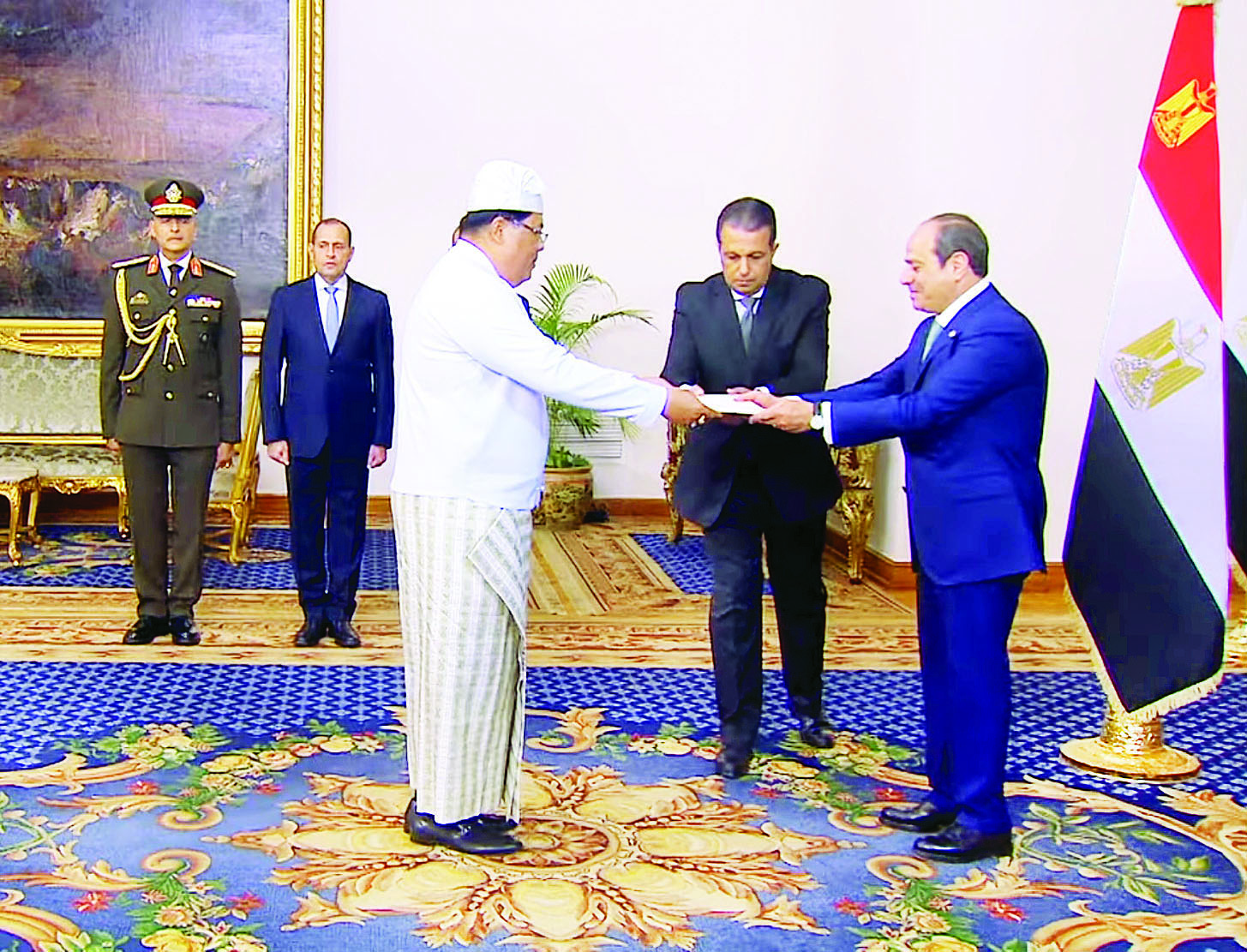 သံအမတ်ကြီး ဦးကျော်တင်ရှိန် အီဂျစ်အာရပ်သမ္မတနိုင်ငံ သမ္မတထံ ခန့်အပ်လွှာပေးအပ်