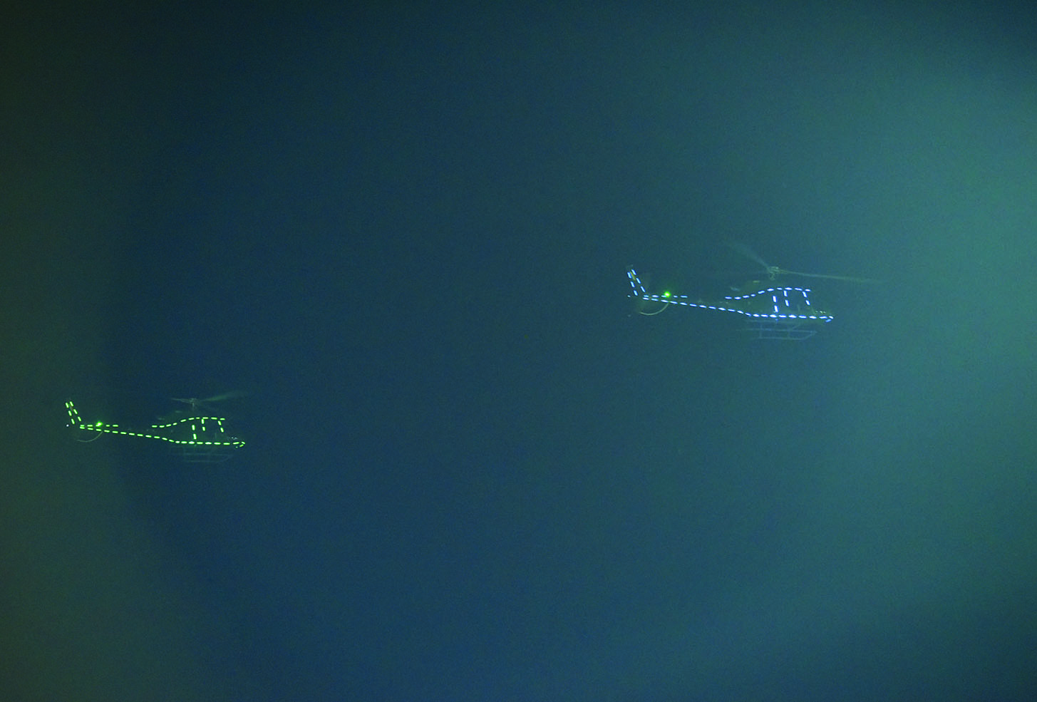 ထိုသို့ ချီတက်အလေးပြုချိန်တွင် တပ်မတော်(လေ)မှ MiG-29 ဘက်စုံသုံး တိုက်လေယာဉ် ၁ စီးက ရှုရပ်ရှေ့တည့်တည့်မှ မီးကျည်များ ထုတ်လွှတ်၍လည်းကောင်း၊ MTX - 1 A လေယာဉ်တစ်စီးနှင့် PT-6 လေယာဉ် ၂ စီး တို့က ရှုရပ်၏ရှေ့တည့်တည့်သို့ Trail Formation ပုံစံဖြင့်လည်းကောင်း၊ H-125 ရဟတ်ယာဉ် ၂ စီးက Trail Formation ပုံစံဖြင့်လည်းကောင်း၊ Bell-206 ရဟတ်ယာဉ် ၁ စီးက ရှုရပ်၏လက်ဝဲဘက်မှ လက်ယာဘက်သို့ ပျံသန်း၍လည်းကောင်း၊ Eurocopter ၂ စီးက Echelon Formation ပုံစံဖြင့်လည်းကောင်း၊ Bell-206 ရဟတ်ယာဉ် ၁ စီးက ရှုရပ်၏ ရှေ့တည့်တည့်မှ ဒုတိယအကြိမ် ပျံသန်း၍လည်းကောင်း၊ Eurocopter ၂ စီးက Echelon Formation ပုံစံဖြင့် ဒုတိယအကြိမ်ပျံသန်း၍လည်းကောင်း၊ BEECH 1900D အမျိုး အစား သယ်ယူပို့ဆောင်ရေးလေယာဉ် ၁ စီးက ရှုရပ်၏ အရှေ့ညာ ၄၅ ဒီဂရီ မြင်ကွင်းမှ ၀၂၅ ဒီဂရီလမ်းကြောင်းအတိုင်း ပျံသန်း၍လည်းကောင်း၊ ATR 72 သယ်ယူပို့ဆောင်ရေး လေယာဉ်တစ်စီးကရှုရပ်၏ ရှေ့တည့်တည့် တောင်မှမြောက်သို့ ပျံသန်း၍လည်းကောင်း၊ K-8 W တိုက်ခိုက်ရေးလေယာဉ် ၂ စီးက ရှုရပ်၏ အရှေ့ညာ ၄၅ ဒီဂရီ မြင်ကွင်းမှ ၀၂၅ ဒီဂရီလမ်းကြောင်းအတိုင်း Echelon Formation ပုံစံဖြင့်လည်းကောင်း၊ Su-30 SME စတုတ္ထမျိုးဆက်လွန်ဘက်စုံသုံး အကြီးစားတိုက်လေယာဉ် ၂ စီးက Echelon Formation ပုံစံဖြင့် ၂ ကြိမ်ပျံသန်း၍ ရှုရပ်ရှေ့တည့်တည့်မှ မီးကျည်များထုတ်လွှတ်၍လည်းကောင်း အသီးသီးသရုပ်ပြပျံသန်းကြပြီး နိုင်ငံတော်စီမံအုပ်ချုပ်ရေးကောင်စီဥက္ကဋ္ဌ တပ်မတော်ကာကွယ်ရေးဦးစီးချုပ်အား အလေးပြုကြသည်။