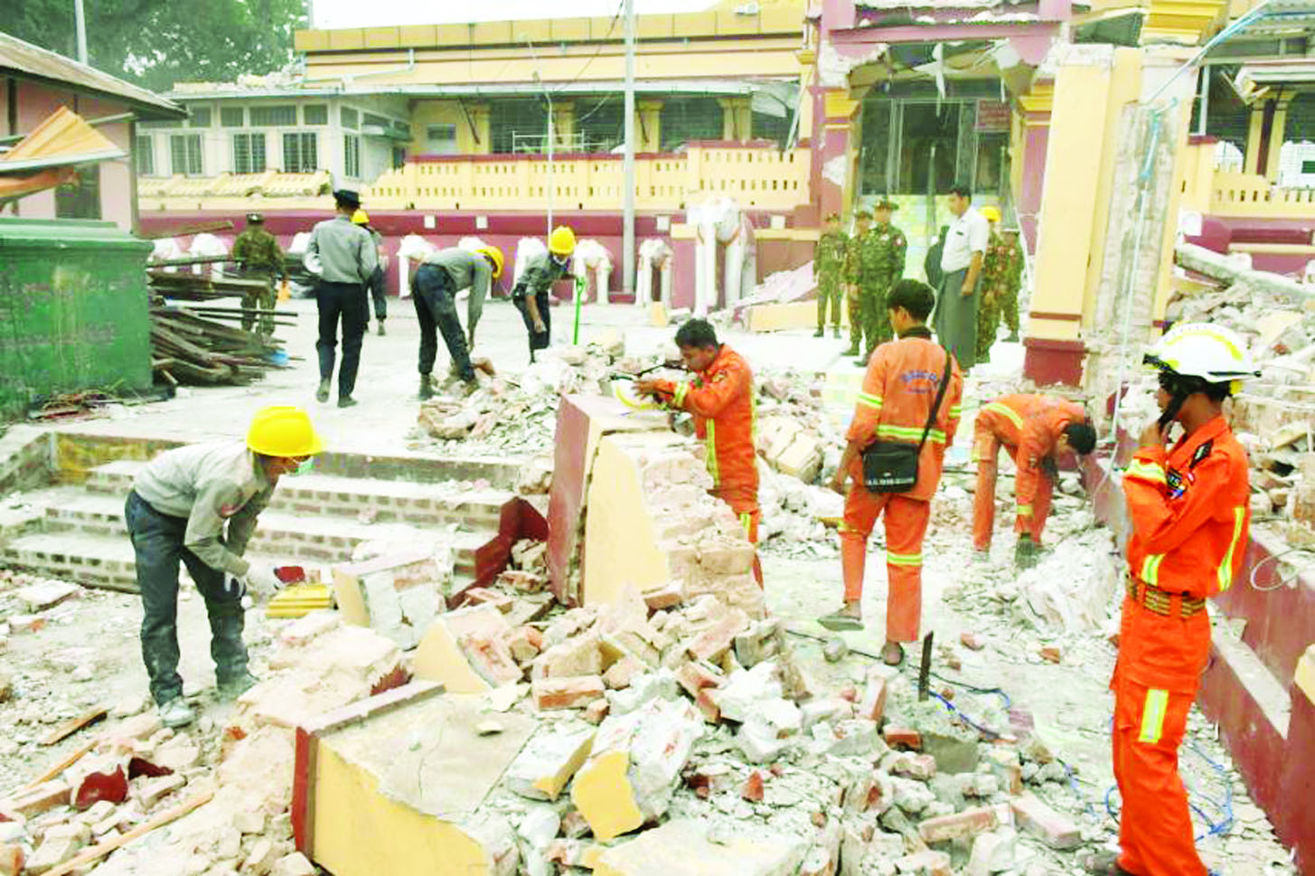 ၂၀၂၅ ခုနှစ် မတ် ၂၈ ရက်က လှုပ်ခတ်ခဲ့သော မန္တလေးငလျင်ကြီးကြောင့် လမ်းတံတား၊ အဆောက်အအုံများ ထိခိုက်ပျက်စီးခဲ့ရသည့် နေရာများ၌ ကူညီကယ်ဆယ်ရေးလုပ်ငန်းများကို တိုင်းစစ်ဌာနချုပ်အသီးသီးမှ တပ်မတော်သားများ၊ မြန်မာနိုင်ငံရဲတပ်ဖွဲ့ဝင်များ၊ မီးသတ်တပ်ဖွဲ့ဝင်များ၊ ပြည်ပနိုင်ငံများမှ ကူညီကယ်ဆယ်ရေးအဖွဲ့များ၊ ဌာနဆိုင်ရာဝန်ထမ်းများ၊ လူမှုကူညီရေးအသင်း/အဖွဲ့များနှင့် ဒေသခံပြည်သူများပူးပေါင်း၍ အချိန်နှင့်တစ်ပြေးညီ ကူညီဆောင်ရွက်ပေးလျက်ရှိသည်။