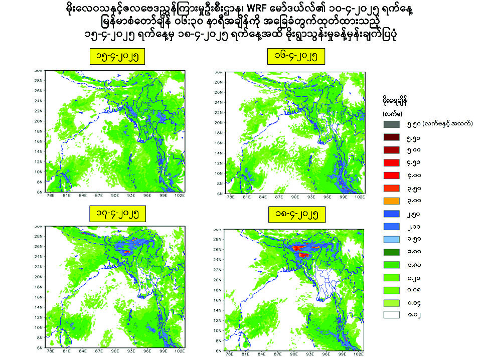 သို့ဖြစ်၍ မိုးသည်းထန်စွာရွာသွန်းခြင်းနှင့်အတူ လေပြင်းတိုက်ခတ်ခြင်း၊ မိုးထစ်ချုန်းခြင်း၊ မိုးကြိုးပစ်ခြင်း၊ လျှပ်စီးလက်ခြင်း၊ မိုးသီးကြွေခြင်း၊ လျှပ်တစ်ပြက်ရေကြီးခြင်းနှင့် မြေပြိုခြင်းစသည့် သဘာဝဘေးအန္တရာယ်များ ဖြစ်ပေါ်နိုင်ပါသဖြင့် အဆိုပါဒေသများရှိ ကုန်းမြင့်ဒေသအနီးတွင် နေထိုင်ကြသူများအနေဖြင့် မြေပြိုမှုအန္တရာယ်ကိုလည်းကောင်း၊ မြစ်ငယ်၊ ချောင်းငယ်များအနီးတွင် နေထိုင်ကြသူများအနေဖြင့် ရေကြီး၊ ရေလျှံမှုအန္တရာယ်များကိုလည်းကောင်း ကြိုတင်သတိပြုရှောင်ရှားနိုင်ပါရန် အကြံပြုအပ်ပါသည်။