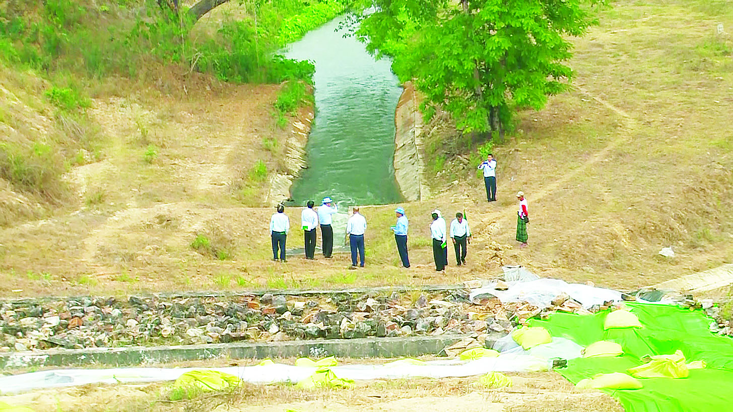 စိုက်ပျိုးရေး၊ မွေးမြူရေးနှင့်ဆည်မြောင်းဝန်ကြီးဌာန ဒုတိယဝန်ကြီး ဦးဗိုလ်ဗိုလ်ကျော်နှင့် တာဝန်ရှိသူများသည် ဧပြီ ၁၀ ရက် မွန်းလွဲပိုင်းတွင် ပဲခူးတိုင်းဒေသကြီး အုတ်တွင်းမြို့နယ်ရှိ မန္တလေးငလျင်ကြီး လှုပ်ခတ်မှုကြောင့် ရေသိုးရေလှောင်တမံ ကြံ့ခိုင်မှုအခြေအနေနှင့် ထိခိုက်ပျက်စီးခဲ့မှုကို ဆည်မြောင်းနှင့် ရေအသုံးချမှုစီမံခန့်ခွဲရေးဦးစီးဌာနက ပြန်လည်ပြုပြင်ဆောင် ရွက်နေမှုအခြေအနေများအား ကြည့်ရှုစစ်ဆေးသည်။