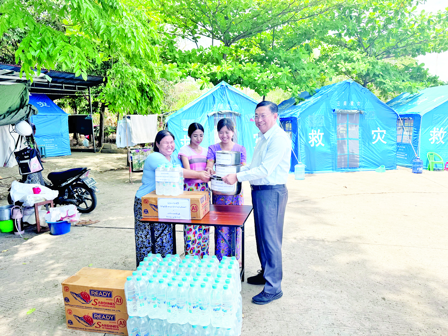နိုင်ငံတော်စီမံအုပ်ချုပ်ရေးကောင်စီဥက္ကဋ္ဌရုံး ဝန်ကြီးဌာန(၁) ပြည်ထောင်စုဝန်ကြီး ဗိုလ်ချုပ်ကြီး မိုးအောင်သည် ယနေ့မွန်းလွဲပိုင်းတွင် နေပြည်တော်ဇဗ္ဗူသီရိမြို့နယ်ရှိ ဝန်ထမ်းအိမ်ရာသို့ သွားရောက်၍ ငလျင်ဒဏ်သင့် ဝန်ထမ်းမိသားစုများအား တွေ့ဆုံအားပေးစကားပြောကြားပြီး စားသောက်ဖွယ်ရာများ၊ သောက်ရေသန့်နှင့် သုံးရေများဖြည့်တင်းရေး ဆောင်ရွက်ပေးခဲ့သည်။