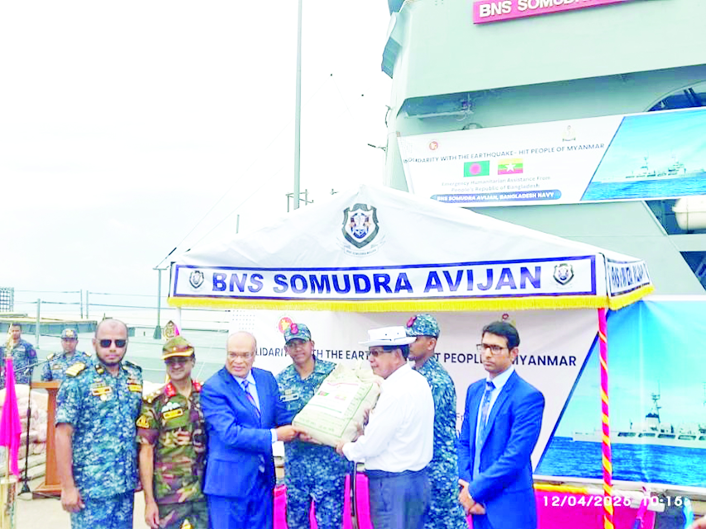 မြန်မာနိုင်ငံ၌ မတ် ၂၈ ရက်တွင် လှုပ်ခတ်ခဲ့သည့် မန္တလေးမြေငလျင် ကြီးကြောင့် နေပြည်တော်ကောင်စီနယ်မြေ၊ စစ်ကိုင်းတိုင်းဒေသကြီး၊ မန္တလေးတိုင်းဒေသကြီး၊ မကွေးတိုင်းဒေသကြီး၊ ရှမ်းပြည်နယ်နှင့် ပဲခူးတိုင်းဒေသကြီးတို့တွင် ပျက်စီးဆုံးရှုံးမှုများဖြစ်ပေါ်ခဲ့ရာ နိုင်ငံတော် အစိုးရအနေဖြင့် အလျင်အမြန်စုံစမ်းစစ်ဆေးခြင်း၊ ကူညီကယ်ဆယ်ရေး လုပ်ငန်းများကို အချိန်နှင့်တစ်ပြေးညီ ဆောင်ရွက်ခြင်းနှင့် ပြည်ပမှ လူသားချင်းစာနာထောက်ထားမှုဆိုင်ရာ အကူအညီများကို ဖိတ်ခေါ်လမ်းဖွင့်ပေးခြင်းများ ဆောင်ရွက်ခဲ့သည်။ ငလျင်ဒဏ်သင့်ပြည်သူ များထံ နိုင်ငံတကာမှကူညီထောက်ပံ့သည့် လူသားချင်းစာနာထောက်ထား မှုဆိုင်ရာ အကူအညီပစ္စည်းများ၊ ဆေးဝါးများသည် မတ် ၂၉ ရက် ညပိုင်းမှစ၍ ရန်ကုန်အပြည်ပြည်ဆိုင်ရာလေဆိပ်၊ နေပြည်တော်အပြည်ပြည် ဆိုင်ရာလေဆိပ်၊ မန္တလေးအပြည်ပြည်ဆိုင်ရာလေဆိပ်နှင့် ရန်ကုန်သီလဝါဆိပ်ကမ်းတို့သို့ ရောက်ရှိလာခဲ့သည်။