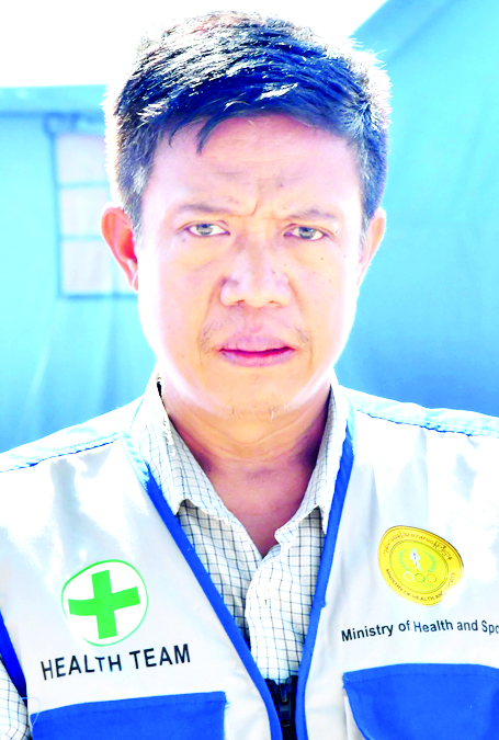 ကျွန်တော်တို့အဖွဲ့ကလူအင်အား ၄၁ ယောက်ပါဝင်ပြီး ဧရာဝတီတိုင်းဒေသကြီး RTT အသင်းက ဖြစ်ပါတယ်။ နေပြည်တော်မှာရှိတဲ့ ငလျင်ဘေးသင့်ဝန်ထမ်းတွေနဲ့ ပြည်သူတွေအတွက် ကျန်းမာရေးစောင့်ရှောက်ဖို့ရောက်ရှိနေတာ ဖြစ်ပါတယ်။ ဇမ္ဗူသီရိမြို့နယ် အတွင်းမှာရှိတဲ့ ယာယီတည်းခိုရေးစခန်းတွေမှာ နေ့ဂျူတီ၊ ညဂျူတီခွဲပြီး သုံးဦးစီထားရှိပါတယ်။ ကျွန်တော်တို့ဆီမှာလည်း လိုအပ်တဲ့ဆေးဝါးတွေပါရှိပါတယ်။ သာမန်ရောဂါအတွက်ကတော့ ဒီယာယီတည်းခိုရေး စခန်းမှာပဲကုသပေးပါတယ်။ ခွဲစိတ်ရမယ့်ရောဂါနဲ့ လွှဲပြောင်းရမယ့်ရောဂါတွေဆိုရင်မြို့နယ်၊ ခရိုင်အစရှိတဲ့ ဆေးရုံတွေကို လွှဲပြောင်းပေးပါတယ်။ ကျန်းမာရေးစောင့်ရှောက်ဖို့အတွက် Mobile Team လည်း သုံးဖွဲ့ခွဲခြားထားပါတယ်။