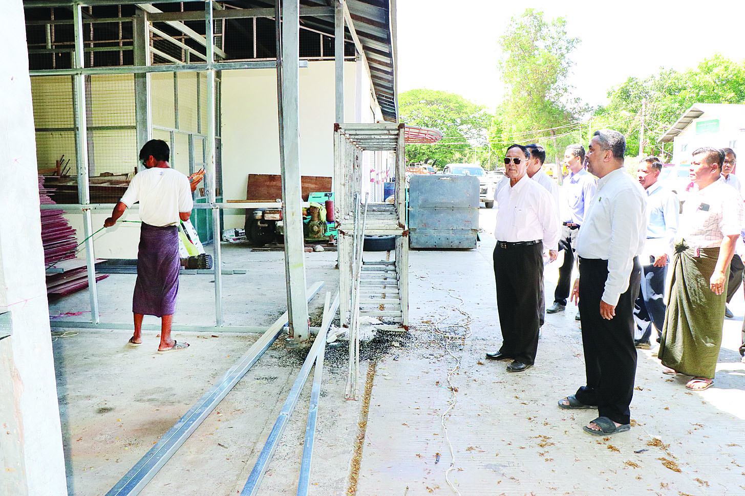 ထိုမှတစ်ဆင့် ပြည်ထောင်စုဝန်ကြီးသည် ကျေးလက်ဒေသဖွံ့ဖြိုးတိုးတက်ရေးဦးစီးဌာန၊ ရုံးချုပ်သို့ သွားရောက်ပြီး ယာဉ်ရပ်နားဝင်းအတွင်း ငလျင်ဒဏ်သင့်ဝန်ထမ်းများ ယာယီတည်းခိုနေထိုင်နိုင်ရေးအတွက် အိမ်ခန်းများ ဆောက်လုပ်နေမှုကိုလည်းကောင်း၊ ဇမ္ဗူသီရိမြို့နယ် ကျေးလက်လမ်းဖွံ့ဖြိုးရေးဦးစီးဌာန တိုင်းဦးစီးမှူးရုံးမြေနေရာသို့ သွားရောက်၍ အမှုထမ်း ၈၀ ယာယီ နေထိုင်နိုင်ရေးအတွက် လေးခန်းတွဲ၊ တစ်ထပ်အိမ်ရာ ၁၀ လုံး ဆောက်လုပ်နေမှုနှင့် ရေ၊ မီး၊ မိလ္လာလုပ်ငန်းများကိုလည်းကောင်း၊ ပျဉ်းမနားမြို့နယ် ကျေးလက်ဒေသဖွံ့ဖြိုးတိုးတက်ရေးဦးစီးဌာန၏ မြောက်လွတ်ကုန်းပစ္စည်းသိုလှောင်ရုံသို့ သွားရောက်၍ ဝန်ထမ်းများ ယာယီနေထိုင်နိုင်ရေးအတွက် အိပ်ခန်းများ ဆောက်လုပ်နေမှုကိုလည်းကောင်း၊ သင်တန်းသား အိပ်ဆောင်ဝင်းအတွင်း ယာယီအိမ်ရာများ တည်ဆောက်မည့် မြေနေရာကိုလည်းကောင်း ကြည့်ရှုစစ်ဆေးကာ တာဝန်ရှိသူများအား တည်ဆောက်ရေးလုပ်ငန်းများကို မိုးရာသီမရောက်မီ သတ်မှတ်အရည်အသွေးပြည့်မီစွာပြီးစီးရေး၊ ဝန်ထမ်းများ အဆင်ပြေစွာနေထိုင်နိုင်ရေးတိုက်တွန်းမှာကြားသည်။