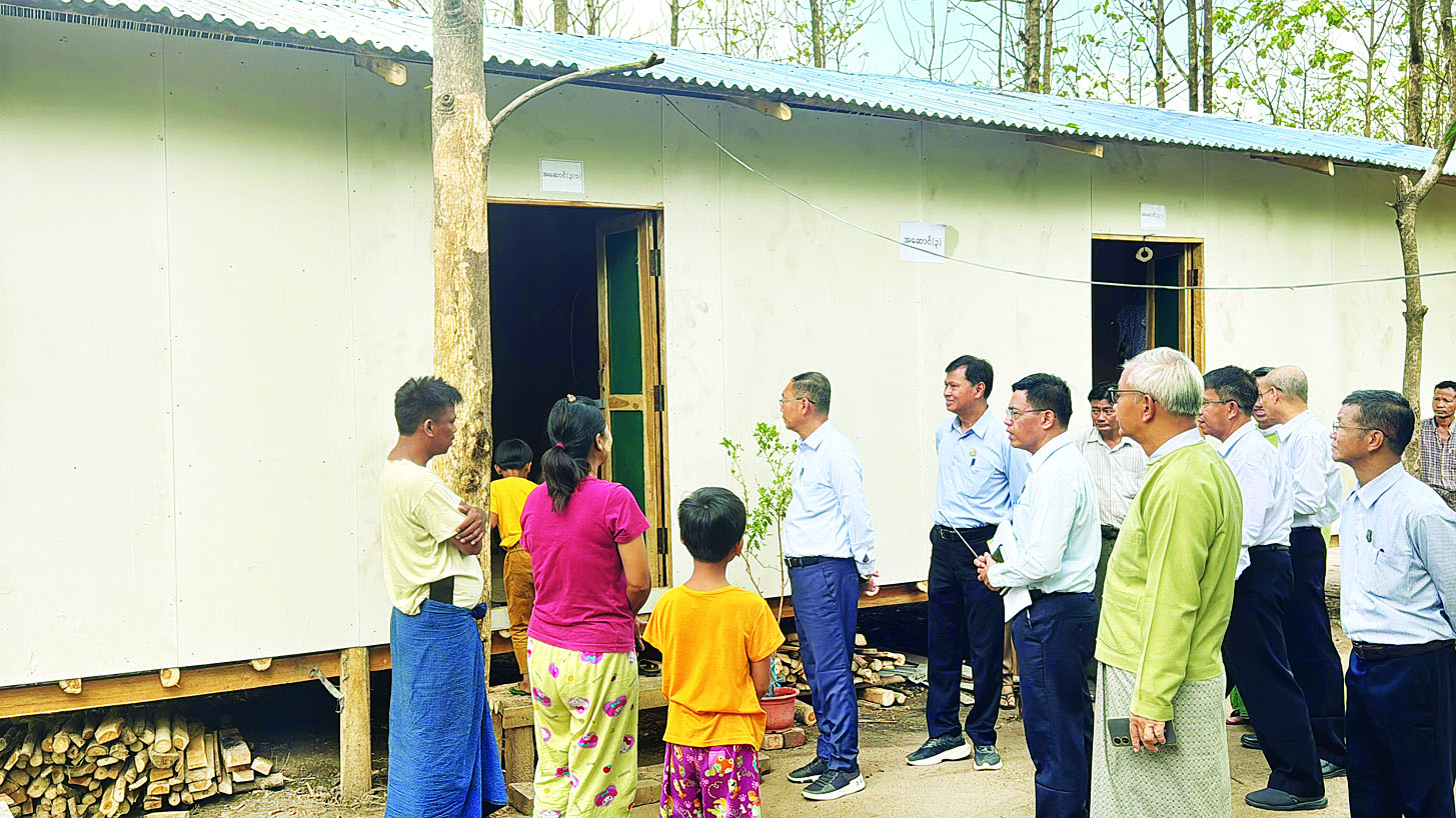 ဆက်လက်၍ ပြည်ထောင်စုဝန်ကြီးနှင့် အဖွဲ့သည် ဆောက်လုပ်ပြီးစီးသော နေအိမ်များတွင် ဝန်ထမ်းမိသားစုများ ရွှေ့ပြောင်းနေထိုင်နေမှုအခြေအနေနှင့် ဝန်ထမ်းအိမ်ရာများမှ ယာယီနေရာရွှေ့ပြောင်းထားသော ဝန်ထမ်းမိသားစုများအား တွေ့ဆုံ၍လိုအပ်သည်များ ပေါင်းစပ်ဆောင်ရွက်ပေးကာ ကားပါကင်ဝင်းရှိ အဆောက်အအုံ၌ ယာယီရုံးခန်းဖွင့်လှစ်၍ ရုံးလုပ်ငန်းများ ဆောင်ရွက်နေမှုအခြေအနေကို ကြည့်ရှုစစ်ဆေးသည်။