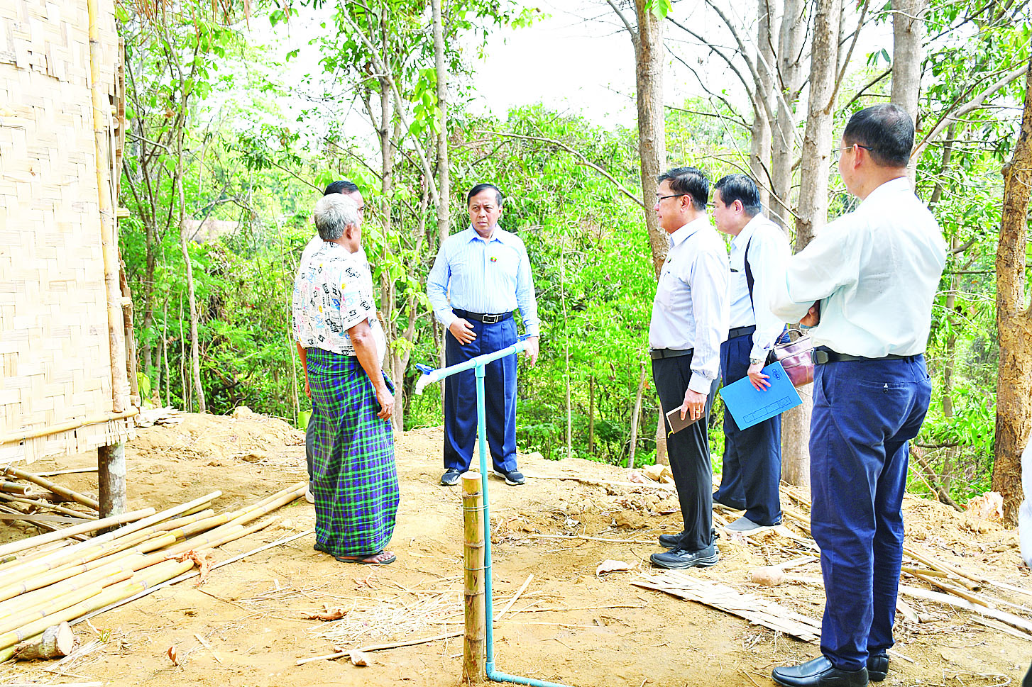 ယင်းနောက် ယာယီတဲများအတွက် သုံးရေသွယ်တန်းထားရှိမှုအခြေအနေ၊ ယာယီတဲများ ဆောက်လုပ်ပြီးစီးမှုအခြေအနေနှင့် ယင်လုံအိမ်သာဆောက်လုပ်မည့် မြေနေရာတို့ကို ကြည့်ရှုစစ်ဆေးပြီး လိုအပ်သည်များကို ပေါင်းစပ်ညှိနှိုင်းဖြည့်ဆည်းဆောင်ရွက်ပေးသည်။