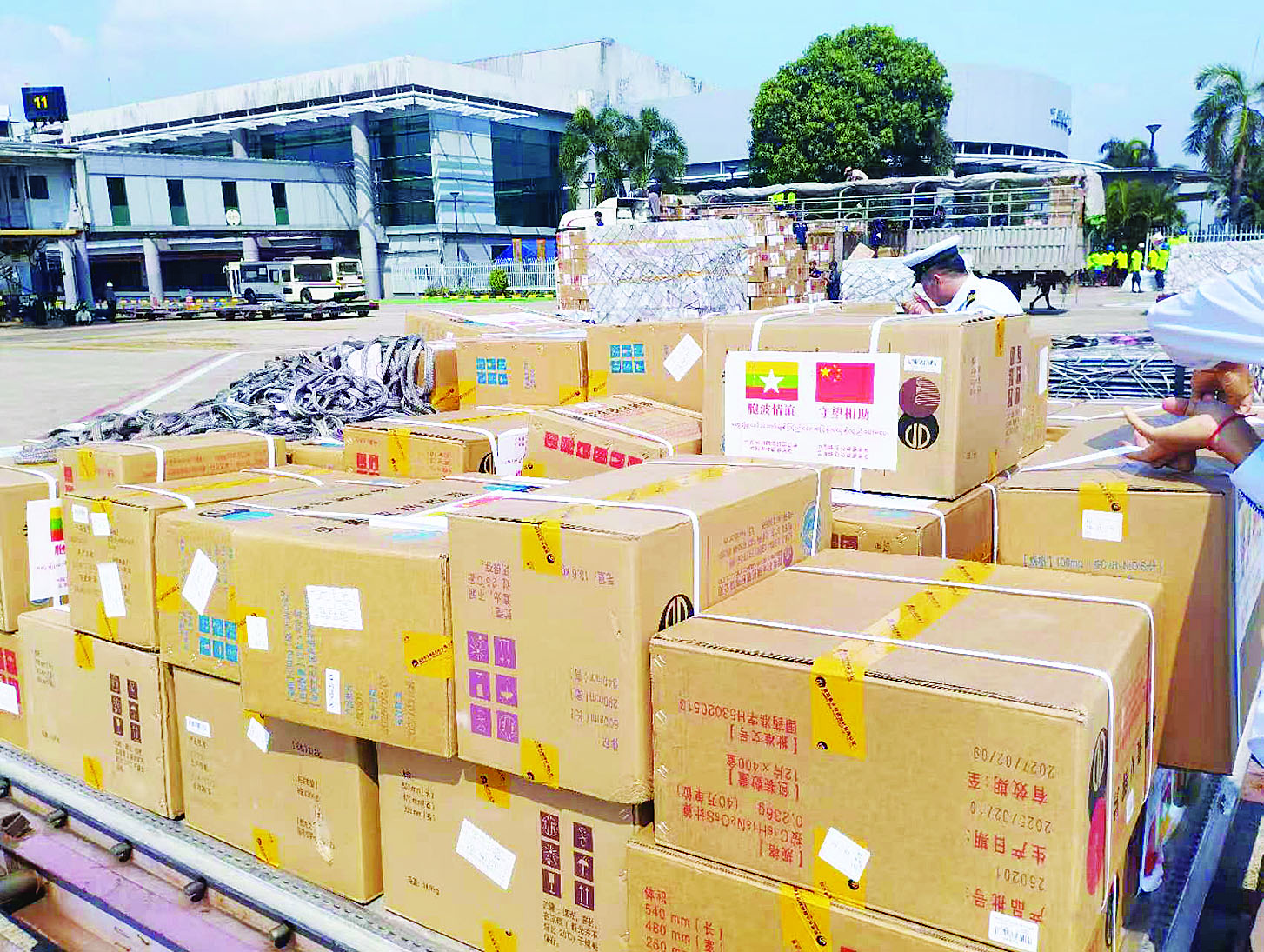 အဆိုပါ အခြေအနေကြောင့် ငလျင်ဒဏ်သက်ရောက်ခဲ့သည့် နေရာများတွင် နေထိုင်သည့် ပြည်သူများ၊ နိုင်ငံ့ဝန်ထမ်းများ အတိဒုက္ခရောက်ရှိပြီး အဘက်ဘက်မှ လိုအပ်ချက်များ ရှိနေခဲ့သည်။ အဆိုပါထိခိုက်ပျက်စီးမှုအပေါ် လူသားချင်းစာနာထောက်ထားသောအားဖြင့် တရုတ်-မြန်မာ ပူးပေါင်းဆက်ဆံရေးဗဟိုအသင်းသည် အဆိုပါသဘာဝဘေးဒဏ်သက်ရောက်သည့် ဒေသများကို ထောက်ပံ့ကူညီရန်အတွက် ဆောင်ရွက်ပေးလျက်ရှိရာ ယူနန်ပြည်နယ် Yunnan Overseas Chinese Charity Foundation မှ မြန်မာနိုင်ငံ ငလျင်ဘေးအန္တရာယ်အတွက် တရုတ်ယွမ် ၆၅၈၃၂၀ တန်ဖိုးရှိ ဆေးပစ္စည်းများ လှူဒါန်းခဲ့သည်။