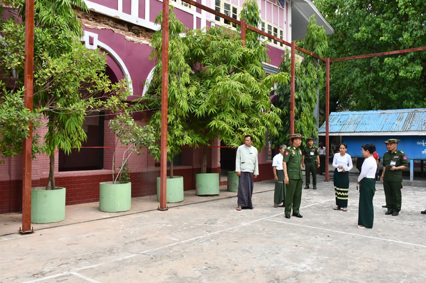 အလားတူ ငလျင်ဒဏ်သင့်နေရာများရှိ ဆောင်ရွက်ရန်ကျန် အဆောက်အအုံအပျက်အစီးများ စနစ်တကျစစ်ဆေး အဆင့်သတ်မှတ်ချက်အရောင်များ ခွဲခြားသတ်မှတ်၍ အမြန်ဆုံးဖယ်ရှား ရှင်းလင်းရေးနှင့် ပြန်လည်တည်ဆောက်ရေးလုပ်ငန်းများစနစ်တကျ ဆောင်ရွက်နိုင်ရေးလုပ်ငန်းညှိနှိုင်းအစည်းအဝေးကို အလယ်ပိုင်းတိုင်းစစ်ဌာနချုပ် အစည်းအဝေးခန်းမ၌ပြုလုပ်ရာ ကာကွယ်ရေးဦးစီးချုပ်ရုံး(ကြည်း)မှ ဒုတိယဗိုလ်ချုပ်ကြီး မျိုးမိုးအောင်နှင့် ဒုတိယဗိုလ်ချုပ်ကြီး စိုးတင့်နိုင်တို့တက်ရောက်ကြပြီး မန္တလေးတိုင်းဒေသကြီးအစိုးရအဖွဲ့ဝင်ဝန်ကြီးများနှင့် တာဝန်ရှိသူများ၏ တင်ပြချက်များအပေါ် လိုအပ်သည်များ ညှိနှိုင်းဆောင်ရွက်ပေးသည်။ ၎င်းနောက် ကာကွယ်ရေးဦးစီးချုပ်ရုံး(ကြည်း)မှ ဒုတိယဗိုလ်ချုပ်ကြီး မျိုးမိုးအောင်နှင့် အလယ်ပိုင်းတိုင်းစစ်ဌာနချုပ်တိုင်းမှူး ဗိုလ်မှူးချုပ် ကျော်ကိုထိုက်တို့သည် မန္တလေး နန်းမြို့တွင်းရှိ နန်းမြို့ ဆုတောင်းပြည့်ဘုရားနှင့် နန်းမြို့ရိုးပတ်လည်တွင် ငလျင်ဒဏ်ကြောင့် ပြိုကျပျက်စီးမှုများ ရှင်းလင်းဖယ်ရှားပြီး ရှေးမူမပျက် ပြန်လည်ပြုပြင် တည်ဆောက်ရေးလုပ်ငန်းများ ဆောင်ရွက်နေမှုများ၊ အောင်မြေသာစံ မြို့နယ်ရှိ အမှတ် (၁) အခြေခံပညာအထက်တန်းကျောင်း၊ အမှတ် (၈) အခြေခံပညာ အထက်တန်းကျောင်းနှင့် အမှတ် (၉) အခြေခံပညာအထက်တန်းကျောင်းတို့၌ အပျက်အစီးများ ဖယ်ရှားရှင်းလင်းနေမှုများအား သွားရောက်ကြည့်ရှုစစ်ဆေးပြီး တက္ကသိုလ်ဝင် စာမေးပွဲ ပြန်လည်ကျင်းပစစ်ဆေးရာတွင် ကြိုတင်ပြင်ဆင်ထားရှိမှု အခြေအနေများနှင့် အခြားလိုအပ်သည်များ ပေါင်းစပ်ညှိနှိုင်း ဆောင်ရွက်ပေးသည်။