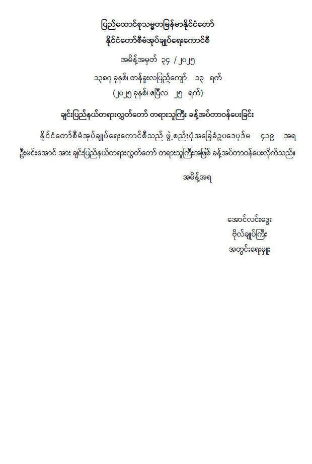 ချင်းပြည်နယ် တရားလွှတ်တော် တရားသူကြီး ခန့်အပ်တာဝန်ပေးခြင်း