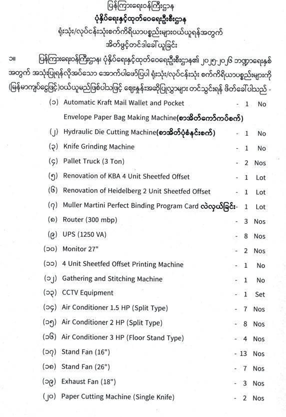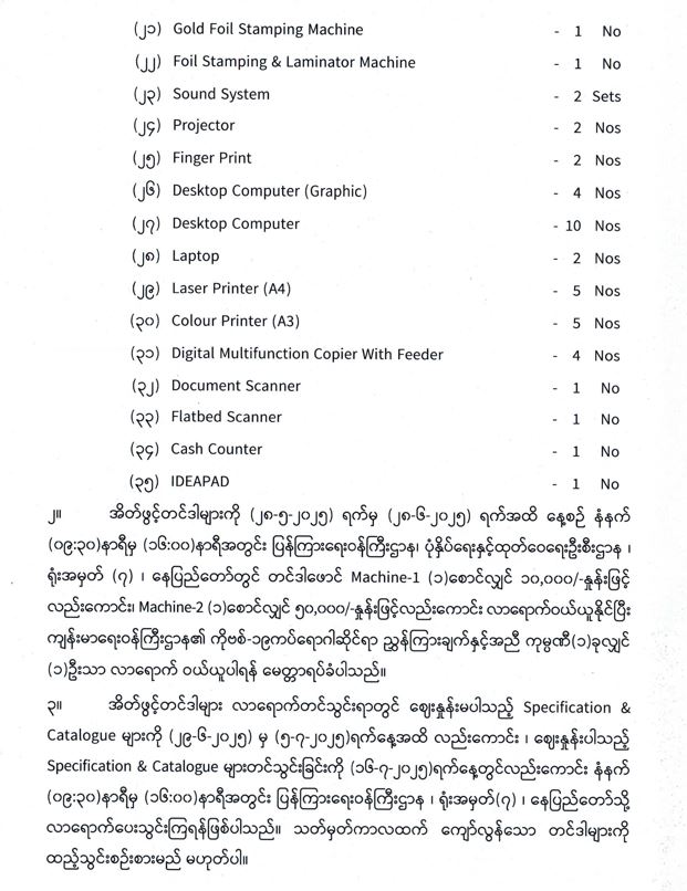 ဦးစီးဌာနနှင့် လုပ်ငန်းများ၏ ကြေညာချက်များ
