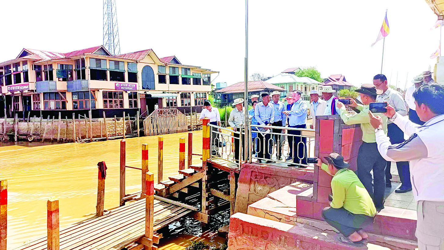 ဆောက်လုပ်ရေးဝန်ကြီးဌာန ဒုတိယဝန်ကြီး ဦးဝင်းဖေ တောင်ကြီးမြို့ရှောင်လမ်းနှင့် ရှမ်းပြည်နယ် (တောင်ပိုင်း) ညောင်ရွှေမြို့နယ်ရှိ ဖောင်တော်ဦးမြတ်စွာဘုရား၌ ငလျင်ဒဏ်ကြောင့် ထိခိုက်ပျက်စီးသွားသည့် သာသနိကအဆောက်အအုံများနှင့် ကမ်းထိန်းနံရံ ပြုပြင်ဆောင်ရွက်နေမှုများ ကြည့်ရှု