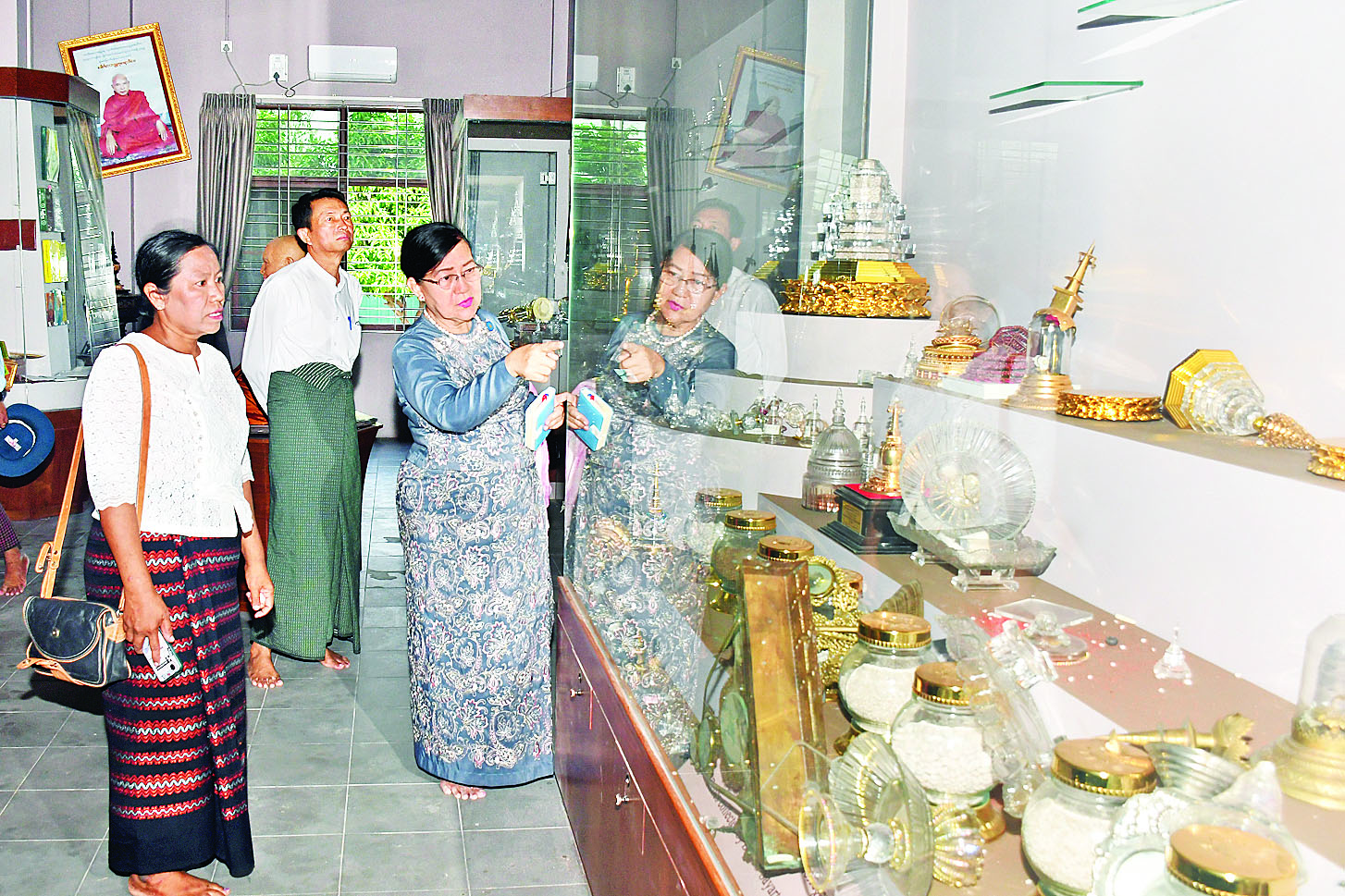 သာသနာရေးနှင့် ယဉ်ကျေးမှုဝန်ကြီးဌာန ဒုတိယဝန်ကြီး ဒေါ်နုမြဇံသည် တာဝန်ရှိသူများနှင့်အတူ ယမန်နေ့မွန်းလွဲပိုင်းတွင် မန္တလေးငလျင်ကြီးဒဏ်ကြောင့် ထိခိုက်ပျက်စီးခဲ့သည့် မဟာအောင်မြေမြို့နယ် ဗန်းမော်ကျောင်းတိုက်ကြီး၏ ပဓာနနာယကဆရာတော် နိုင်ငံတော်သံဃမဟာနာယကအဖွဲ့ဥက္ကဋ္ဌ အဘိဓဇမဟာရဋ္ဌဂုရု၊ အဘိဓဇ အဂ္ဂမဟာသဒ္ဓမ္မ ဇောတိက ဒေါက်တာဘဒ္ဒန္တကုမာရာဘိဝံသ ဗန်းမော်ဆရာတော် ဘုရားကြီး၏ သာသနာ့ဝန် ထမ်းဆောင်သာသနာပြုခဲ့မှုမှတ်တမ်းများ၊ သုံးဆောင်ခဲ့သော အသုံးအဆောင်ပစ္စည်းများ ခင်းကျင်းပြသထားရာပြတိုက်သို့ သွားရောက်ကြည့်ရှုစစ်ဆေးပြီး လိုအပ်သည်များ မှာကြားသည်။