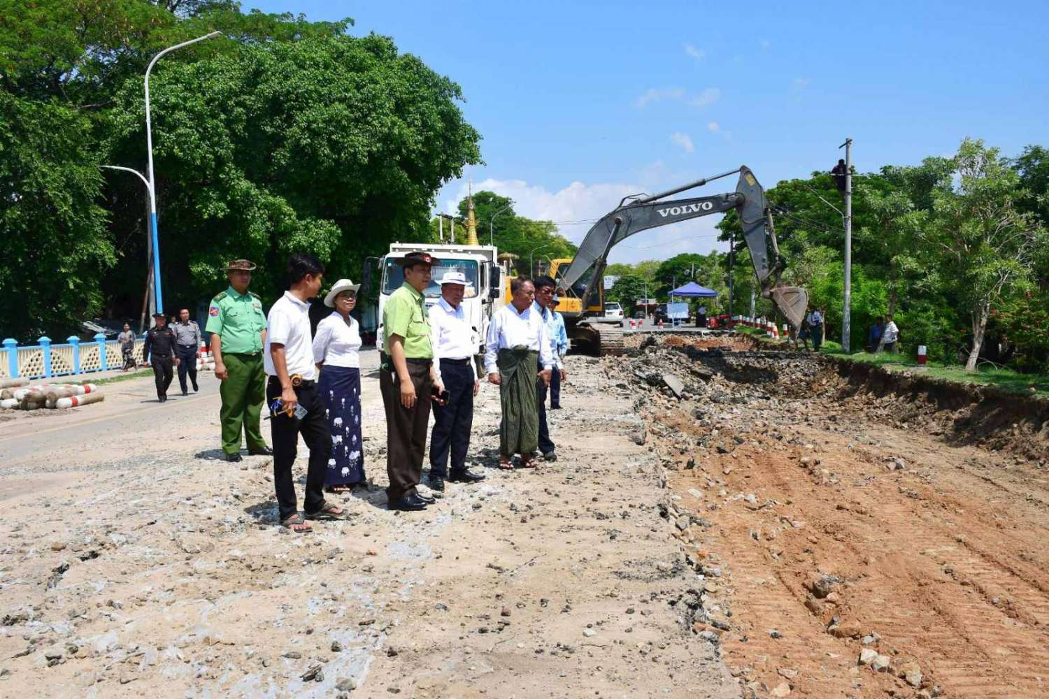ထိုသို့ကြည့်ရှုစစ်ဆေးရာတွင် ကန်ပေါင်မြေပြိုကျခြင်းနှင့် အက်ကြောင်းဖြစ်ပေါ်ခြင်းအား ပြုပြင်ဆောင်ရွက်ခြင်းလုပ်ငန်းကိုဆောင်ရွက်သည့် မြို့နယ်ဆည်မြောင်းနှင့်ရေအသုံးချရေးစီမံခန့်ခွဲမှုဦးစီးဌာန မြို့နယ်ဦးစီးမှူး ဦးသန်းထိန်က လုပ်ငန်းဆောင်ရွက်အခြေအနေများမှာ ပယ်မြေဖယ်ရှားခြင်းလုပ်ငန်း၊ Sand & Gravel Mixture ခင်းခြင်းလုပ်ငန်း၊ ကန်ပေါင်မြေဖို့ခြင်းလုပ်ငန်းနှင့် ရေစစ်ရိုးကျောက်စီခြင်းလုပ်ငန်းများ ၉၉ ရာခိုင်းနှုန်းဆောင်ရွက်ပြီးစီးကြောင်းကိုလည်းကောင်း၊ လမ်းပိုင်းတည်ဆောက်ရေးလုပ်ငန်းများကို ဆောင်ရွက်သည့် ယုဇနကုမ္ပဏီမှတာဝန်ရှိသူက ကန်ပေါင်တွင် ပြန်လည်တည်ဆောက်မည့် လမ်းလွှာဒီဇိုင်းပတ်သက်၍ ယခင်အသုံးပြုခဲ့ လမ်းလွှာဒီဇိုင်းဟောင်းထက် တမံအပေါ်အားသက်ရောက်မှုညီညာပျံ့နှံ့ပြီး သက်သာစေသော လမ်းလွှာဒီဇိုင်းဖြစ်ပါကြောင်း၊ ယခုပြန်လည်တည်ဆာက်မည့်လမ်းပိုင်းကို ကျောက်ကတ္တရာလမ်းခင်းခြင်းဆောင်ရွက်ပြီး မိုးရာသီကုန်ချိန်တွင် နိုင်လွန်ကတ္တရာခင်းခြင်း ဆက်လက်ဆောင်ရွက်မည်ဖြစ်ပါကြောင်း၊ လမ်းတည်ဆောက်ရေးလုပ်ငန်းတွင် သွားလာဆက်သွယ်မှုအဆင်ပြေစေရန်အတွက် လမ်းတစ်ခြမ်းပိတ်၍ လုပ်ငန်းများဆောင်ရွက်ကာ ကျန်တစ်ခြမ်းတွင် လုပ်ငန်းသုံးမော်တော်ယာဉ်များ သွားလာနိုင်ရန်ဖွင့်ထားပါကြောင်း စသည်တိုင်းဒေသကြီးလမ်းပန်းဆက်သွယ်ရေးဝန်ကြီးအား ရှင်းလင်းတင်ပြသည်။ ထိုနောက် တိုင်းဒေသကြီးလမ်းပန်းဆက်သွယ်ရေးဝန်ကြီးသည် ရန်ကုန်-မန္တလေး ကားလမ်းပိုင်းနေရာ (မိတ္ထီလာတောင်ကန် ကန်ပေါင်) ပြိုကျပျက်စီးမှု ပြုပြင်တည်ဆောက်နေမှုလုပ်ငန်းများအား ကြည့်ရှုစစ်ဆေးခဲ့ပြီး လုပ်ငန်းများ အဆင်ပြေချောမွေ့စွာ အမြန်ဆုံးပြီးစီးနိုင်ရေးအတွက် လိုအပ်သည်များကို မှာကြားခဲ့ကြောင်းသိရသည်။