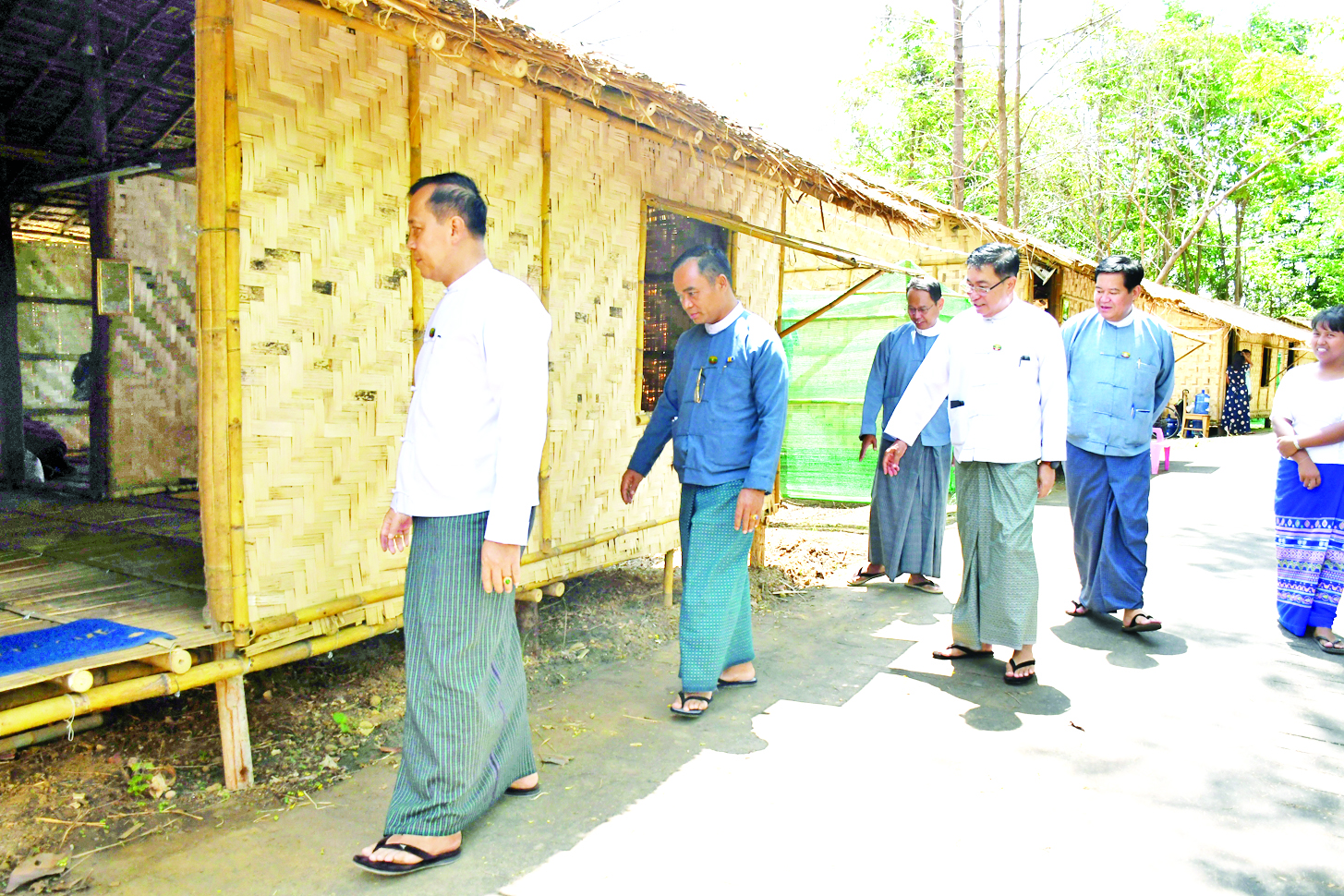 ဦးစွာ ပြည်ထောင်စုဝန်ကြီးနှင့် အဖွဲ့သည် တိုင်းရင်းသားလူမျိုးများ ရေးရာဝန်ကြီးဌာန ရုံးမြေဧရိယာအတွင်းရှိ ခြောက်ခန်းတွဲဝန်ထမ်းအိမ်ရာဝန်းကျင်၌ ကိုယ်စီဆောက်လုပ်ပေးထားသော ဘာရှာအဆောက်အအုံများတွင် ဝန်ထမ်းများ မိသားစုအလိုက်နေထိုင်မှု၊ လျှပ်စစ်မီးသွယ်တန်းထားရှိမှု၊ သုံးရေသွယ်တန်းထားရှိမှု၊ ရေချိုးခန်းနှင့် သန့်စင်ခန်းတည်ဆောက်ထားမှုများကို ကြည့်ရှုစစ်ဆေးပြီး ဝန်ထမ်းမိသားစုများကို အားပေးစကားပြောကြားကာ လိုအပ်သည်များကို ဖြည့်ဆည်းဆောင်ရွက်ပေးသည်။