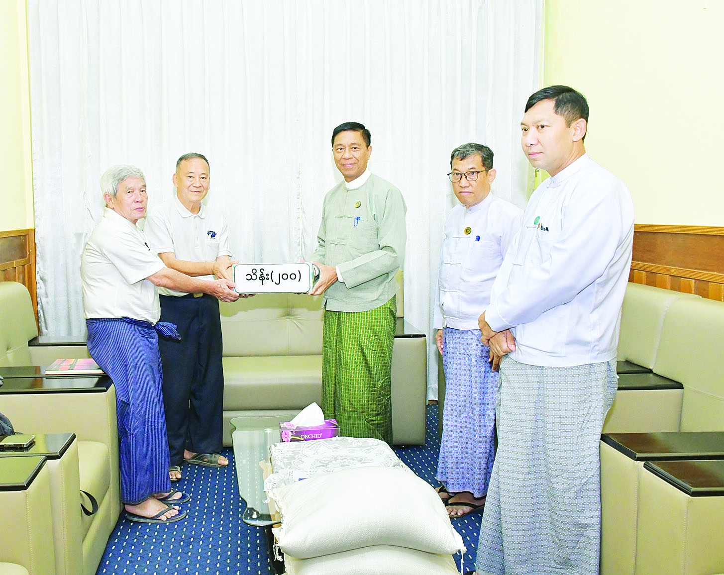 မန္တလေးငလျင်ဘေးသင့်ဝန်ထမ်းများအတွက် လိုအပ်သည့် ထောက်ပံ့မှုများနှင့် ပြန်လည်ထူထောင်ရေးလုပ်ငန်းများ ဆောင်ရွက်နိုင်ရန်အတွက် TZU CHI CHARITY FOUNDATION က ငွေကျပ်သိန်း ၂၀၀၊ ဆန်ခြောက်ပြည်အိတ် ၉၂၀ နှင့် ဆီတစ်လီတာဘူး ၉၂၀ ကို လူမှုဝန်ထမ်း၊ ကယ်ဆယ်ရေးနှင့် ပြန်လည်နေရာချထားရေးဝန်ကြီးဌာန၊ သဘာဝဘေးအန္တရာယ် ဆိုင်ရာစီမံခန့်ခွဲမှုဗဟိုဌာန (DMC) ရုံးသို့ လာရောက်ပေးအပ်လှူဒါန်းရာ ပြည်ထောင်စုဝန်ကြီး ဒေါက်တာ စိုးဝင်းက လက်ခံရယူပြီး ကျေးဇူးတင်စကားပြောကြားကာ ဂုဏ်ပြုမှတ်တမ်းလွှာ ပြန်လည်ပေးအပ်ခဲ့ကြောင်း သတင်းရရှိသည်။