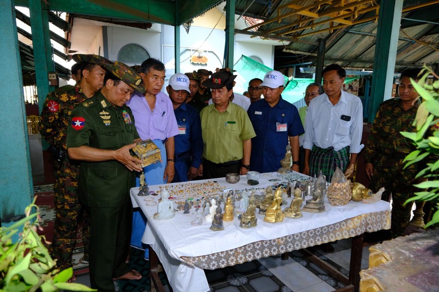 ထို့အတူ ကာကွယ်ရေးဦးစီးချုပ်ရုံး(ကြည်း)မှ ဒုတိယဗိုလ်ချုပ်ကြီး စိုးတင့်နိုင်သည် တာဝန်ရှိသူများနှင့်အတူ မန္တလေးမြို့၊ အောင်မြေသာစံမြို့နယ်ရှိ ဆင်တဲတိုက်သစ်ကျောင်းတိုက်၊ အမရပူရမြို့နယ်ရှိ ပုထိုးတော်ကြီး ဆုတောင်းပြည့်မြတ်စွာဘုရား၊ ဆေးအိုးဘိုကျေးရွာရှိ ဓမ္မမဏ္ဍိုင်ကျောင်း၊ ဇဗူထိပ်ပန်ဘုရား များသို့သွားရောက်၍ ငလျင်ဒဏ်ကြောင့် ပြိုကျပျက်စီးခဲ့သည့် အပျက်အစီးများအား တပ်မတော်သားများ၊ မြန်မာနိုင်ငံရဲတပ်ဖွဲ့ဝင်များ၊ မီးသတ်တပ်ဖွဲ့ဝင်များ၊ ဌာနဆိုင်ရာဝန်ထမ်းများ၊ လူမှုကူညီရေး အသင်းအဖွဲ့များပူးပေါင်း၍ ကူညီကယ်ဆယ်ရေးလုပ်ငန်းများ အရှိန်အဟုန်မြှင့်ဆောင်ရွက်နေသည်များကို လည်းကောင်း၊ အပျက်အစီးများ ဖယ်ရှားရှင်းလင်းဆောင်ရွက်ပြီးစီးမှုအခြေအနေများကိုလည်းကောင်း၊ ဘုရားစေတီပုထိုးများတွင် ရှေးမူမပျက်ပြန်လည်ပြုပြင်တည်ဆောက်ရေးလုပ်ငန်းများ ဆောင်ရွက်နေမှု အခြေအနေများကိုလည်းကောင်း ကြည့်ရှုအားပေး၍ ဆရာတော်ကြီးများအား အလှူငွေများ ပေးအပ်လှူဒါန်းကာ ငလျင်ဒဏ်ကြောင့် ထိခိုက်ပျက်စီးခဲ့သော ဘုရားစေတီပုထိုးများမှ အပျက်အစီးများရှင်းလင်းစဉ် ပြန်လည်သိမ်းဆည်းတွေ့ရှိရသော ဌာပနာပစ္စည်းများအား စနစ်တကျထားရှိထိန်းသိမ်းရန်နှင့် ပြန်လည်တည်ဆောက်ရေးလုပ်ငန်းများ အမြန်ဆုံးဆောင်ရွက်နိုင်ရေးတို့အတွက် တာဝန်ရှိသူများအားမှာကြား၍ လိုအပ်သည်များ ပေါင်းစပ်ညှိနှိုင်း ဆောင်ရွက်ပေးခဲ့သည်။