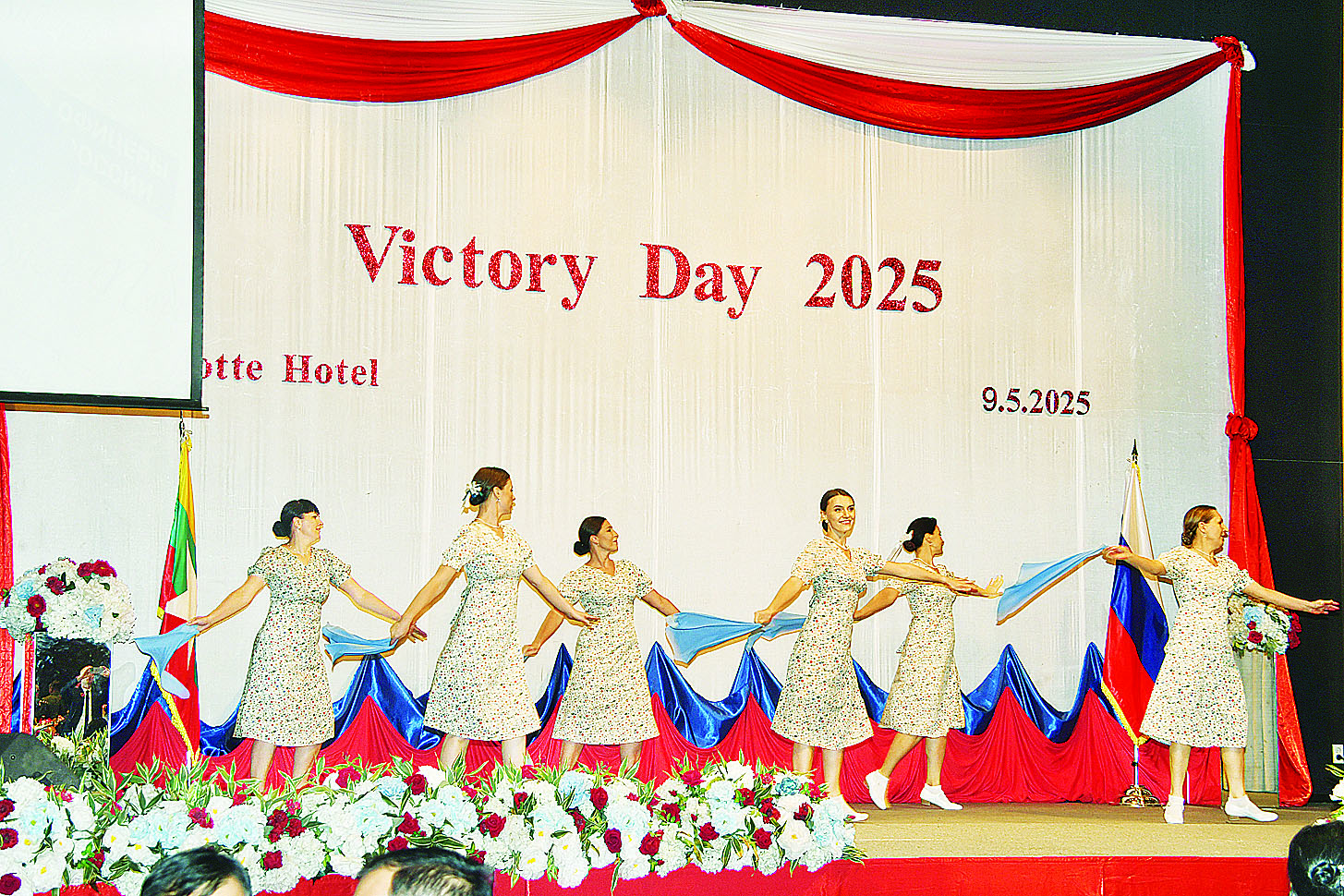 ရုရှားဖက်ဒရေးရှင်းနိုင်ငံ၏ (၁၉၄၁ - ၁၉၄၅) မဟာမျိုးချစ်စစ်ပွဲကြီးအောင်ပွဲ နှစ် (၈၀) ပြည့်အထိမ်းအမှတ် ညစာစားပွဲအခမ်းအနားကို ယနေ့ညပိုင်းတွင် ရန်ကုန်မြို့ရှိ Lotte Hotel ၌ ကျင်းပရာ နိုင်ငံတော်စီမံအုပ်ချုပ်ရေးကောင်စီ ဒုတိယဥက္ကဋ္ဌ ဒုတိယဝန်ကြီးချုပ် ဒုတိယဗိုလ်ချုပ်မှူးကြီး စိုးဝင်းနှင့် ဇနီး ဒေါ်သန်းသန်းနွယ် တက်ရောက်ချီးမြှင့်သည်။