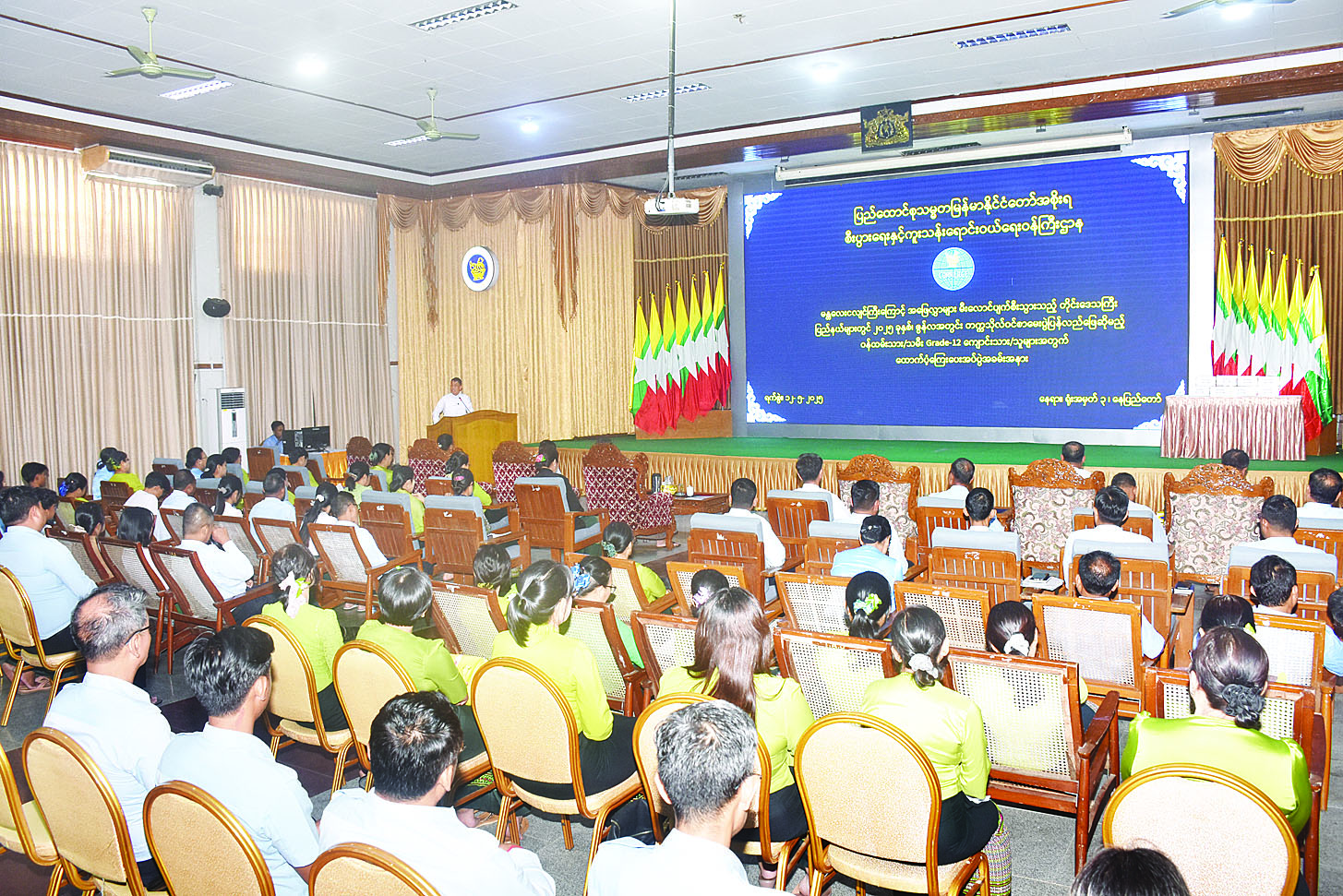 ၂၀၂၅ ခုနှစ် ဇွန်လအတွင်း ပြန်လည်ကျင်းပစစ်ဆေးသွားမည့် ၂၀၂၄ - ၂၀၂၅ တက္ကသိုလ်ဝင်စာမေးပွဲ ပြန်လည်ဖြေဆိုမည့် ဝန်ထမ်းသား၊ သမီး Grade-12 ကျောင်းသား ကျောင်းသူများအား ထောက်ပံ့ငွေပေးအပ်ပွဲအခမ်းအနားကို ယနေ့မွန်းလွဲပိုင်းတွင် နေပြည်တော်ရှိ ရုံးအမှတ်-၃ ၌ ကျင်းပရာ စီးပွားရေးနှင့်ကူးသန်းရောင်းဝယ်ရေးဝန်ကြီးဌာန ပြည်ထောင်စုဝန်ကြီး ဦးထွန်းအုံ တက်ရောက်အမှာစကားပြောကြားသည်။
