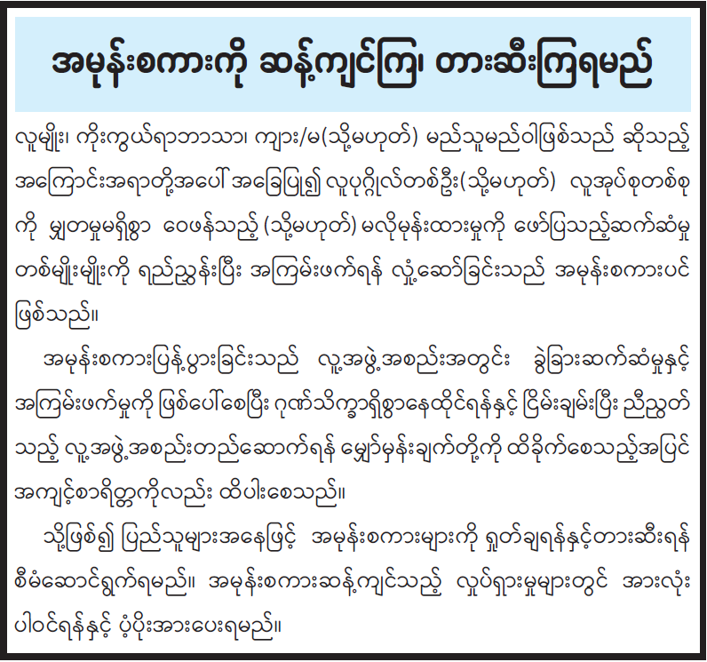 သို့ဖြစ်၍ ပြည်သူများအနေဖြင့် အမုန်းစကားများကို ရှုတ်ချရန်နှင့်တားဆီးရန် စီမံဆောင်ရွက်ရမည်။ အမုန်းစကားဆန့်ကျင်သည့် လှုပ်ရှားမှုများတွင် အားလုံးပါဝင်ရန်နှင့် ပံ့ပိုးအားပေးရမည်။