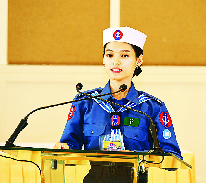 ထို့နောက် မိမိတို့ရေကြောင်း၊ လေကြောင်းလူငယ်မောင်မယ်များအနေဖြင့် နွေရာသီအားလပ်ရက်ကာလများတွင် အနာဂတ်နိုင်ငံတော်အကျိုးဖြစ်ထွန်းစေမည့် ပညာရပ်များကို စာတွေ့၊ လက်တွေ့သင်ကြားခွင့်ရရှိခဲ့ပြီး ဒေသအသီးသီးမှလူငယ်မောင်မယ်များနှင့် တစ်စုတစ်စည်းတည်း တွေ့ဆုံခွင့်ရရှိသည့်အတွက် နိုင်ငံတော်အကြီးအကဲနှင့်တကွ တာဝန်ရှိသူများအားလုံးကို ကျေးဇူးတင်ရှိပါကြောင်း၊ ယခုသင်တန်းများမှ ရရှိခဲ့သည့် အသိပညာဗဟုသုတများသည် မိမိတို့လူငယ်မောင်မယ်များ ဆက်လက်လျှောက်လှမ်းကြရမည့် ရည်မှန်းချက်ပန်းတိုင်များနှင့် တိုင်းပြည်အတွက် တစ်ထောင့်တစ်နေရာမှ အုတ်တစ်ချပ်၊ သဲတစ်ပွင့်ပမာ အထောက်အကူပြုသွားမည်ဖြစ်သည်ဟုလည်း ယုံကြည်ပါကြောင်း၊ မိမိတို့လူငယ်မောင်မယ်များအနေဖြင့် နိုင်ငံတော်အကျိုးစီးပွားအတွက် ထိရောက်စွာစွမ်းဆောင်ပေးနိုင်သော တက်ကြွသည့် နိုင်ငံ့သားကောင်းများဖြစ်အောင် အစဉ်ကြိုးပမ်းဆောင်ရွက်သွားမည်ဖြစ်ပါကြောင်းဖြင့် ကျေးဇူးတင်စကားများ အသီးသီးပြန်လည် ပြောကြားသည်။