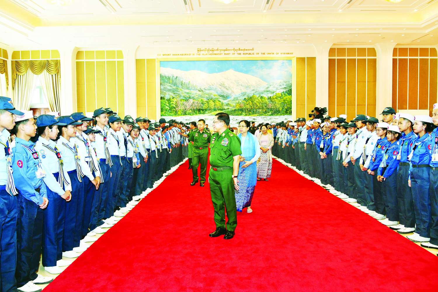 ဦးစွာ နိုင်ငံတော်စီမံအုပ်ချုပ်ရေးကောင်စီဥက္ကဋ္ဌ တပ်မတော်ကာကွယ်ရေးဦးစီးချုပ်က ဂုဏ်ပြုအမှာစကားပြောကြားရာတွင် နှစ်စဉ်နွေရာသီကျောင်းပိတ်ရက်ရှည်ကာလတွင် မိမိတို့၏ကိုယ်ပိုင်အချိန်များကို အကျိုးမဲ့မဖြစ်စေဘဲ မိမိအတွက်သော်လည်းကောင်း၊ တိုင်းပြည်အတွက်သော်လည်းကောင်း အကျိုးရှိစေသည့် ရေကြောင်း၊ လေကြောင်းပညာရပ်ဆိုင်ရာ လူငယ်သင်တန်းအသီးသီးကို လေ့လာသင်ယူတက်ရောက်ခဲ့ကြသည့် နိုင်ငံတစ်ဝန်းမှ မောင်မယ်များနှင့် တွေ့ဆုံပြီး ဂုဏ်ပြုအမှာစကား ပြောကြားခြင်းဖြစ်ကြောင်း။