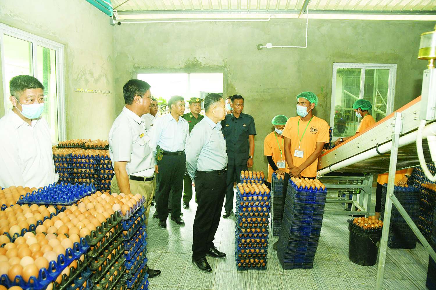 ထို့နောက် နိုင်ငံတော်စီမံအုပ်ချုပ်ရေးကောင်စီဒုတိယဥက္ကဋ္ဌ ဒုတိယဝန်ကြီးချုပ် ဒုတိယဗိုလ်ချုပ်မှူးကြီးစိုးဝင်းနှင့် အဖွဲ့ဝင်များသည် ဇုန်အတွင်း DYL အသားတိုးဝက်မွေးမြူရန် တည်ဆောက်ထားရှိ သည့် အလုံပိတ်အအေးပေးစနစ် (Evaporated Auto Driking Auto Feeding System) ဝက်ခြံများနှင့် Lohmann Brown (Germany) ဥစားကြက်များကို အလုံပိတ်အအေးပေးစနစ် (Evaporated Fully Automatic System) ဖြင့် မွေးမြူထားရှိမှုများကို လိုက်လံကြည့်ရှုစစ်ဆေးပြီး သိရှိလိုသည်များ မေးမြန်းဆွေးနွေးကာ လိုအပ်သည်များကို တာဝန်ရှိသူများအား မှာကြားခဲ့ကြောင်း သတင်းရရှိသည်။