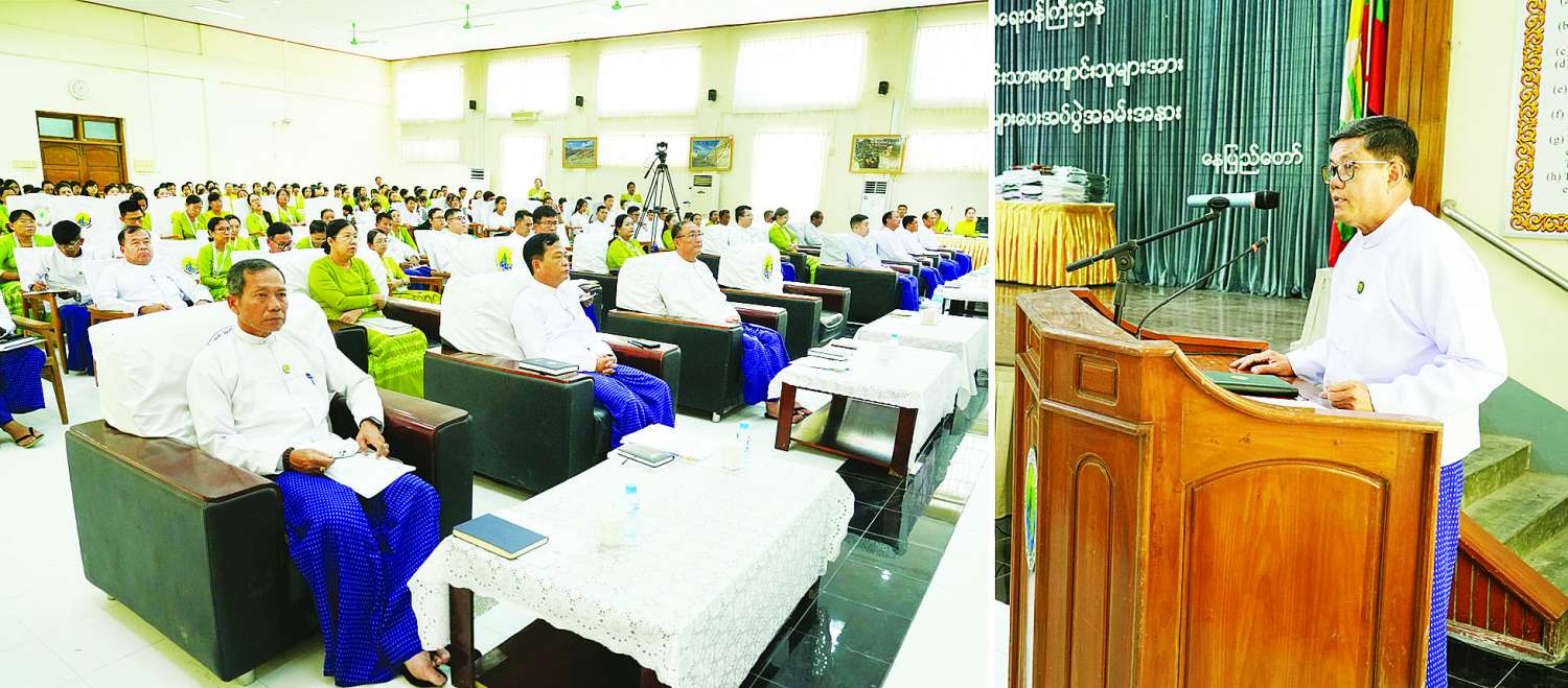 အခမ်းအနားတွင် ပြည်ထောင်စုဝန်ကြီးကဝန်ကြီးဌာနအနေဖြင့် ဝန်ထမ်းများ၏ သားသမီး ကျောင်းသား ကျောင်းသူများ ပညာသင်ကြားရေးအတွက် ပညာသင်ထောက်ပံ့ပေးအပ်မှုများကို နှစ်စဉ်ဆောင်ရွက်လျက်ရှိရာ ယခုနှစ်တွင် ကျောင်းသုံးပစ္စည်းများကို ပထမအကြိမ်၊ ဒုတိယအကြိမ်ခွဲခြား၍ ပေးအပ်နိုင်ရေးစီစဉ်ထားရှိပါကြောင်း၊ ယခုကဲ့သို့ ဆောင်ရွက်ပေးခြင်းမှာ ဝန်ထမ်းများ၏ သားသမီးများ ပညာသင်ကြားကြရာတွင် တစ်ဖက်တစ်လမ်းမှ အထောက်အပံ့ဖြစ်စေရန် ရည်ရွယ်ပြုလုပ်ပေးခြင်းဖြစ်ပါကြောင်း၊ ကျောင်းနေအရွယ် လူငယ်လူရွယ်များအတွက် မြင့်မားသောပညာ ရေးစနစ်ရရှိစေရန် မိဘများအားလုံး ဝိုင်းဝန်းပူးပေါင်းဆောင်ရွက်ကြရမည်ဖြစ်ပါကြောင်း၊ ကျောင်းသား ကျောင်းသူများအနေဖြင့် သတ်မှတ်ပြဋ္ဌာန်းထားသော ကျောင်းပညာရေးသာမက ပြင်ပဗဟုသုတများပါ ကြိုးစားသင်ယူကြရန်နှင့် ကျောင်းမှ သင်ကြားပို့ချချက်များအား အမှန်တကယ်နားလည်တတ်မြောက်အောင် ကြိုးစားသင်ယူသွားကြပြီး နိုင်ငံတော်က အားကိုးအားထားပြုရသည့် လူငယ်လူရွယ်များဖြစ်အောင် အစဉ်တစိုက် ကြိုးစားသွားကြရမည်ဖြစ်ပါကြောင်း ပြောကြားသည်။