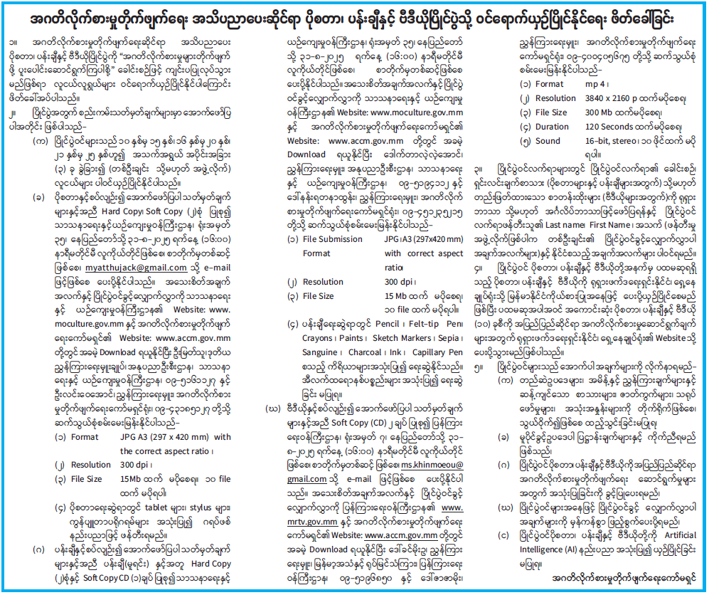 အဂတိလိုက်စားမှုတိုက်ဖျက်ရေး အသိပညာပေးဆိုင်ရာ ပိုစတာ၊ ပန်းချီနှင့် ဗီဒီယိုပြိုင်ပွဲသို့ ဝင်ရောက်ယှဉ်ပြိုင်နိုင်ရေး ဖိတ်ခေါ်ခြင်း 05/24/2025