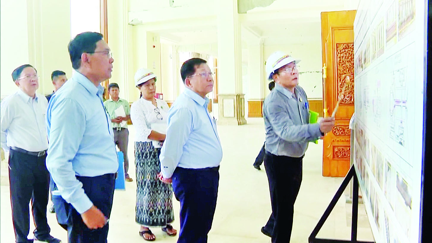ဦးစွာ နိုင်ငံတော်စီမံအုပ်ချုပ်ရေးကောင်စီဥက္ကဋ္ဌ နိုင်ငံတော်ဝန်ကြီးချုပ်သည် အမှတ် (၁) ဂိတ်အဝင်ကြိုးတံတားနှင့် မုခ်ဦး၊ ပြည်ထောင်စုလွှတ်တော်အဆောက်အဦ၊ ပြည်သူ့လွှတ်တော်အဆောက်အဦ၊ ဇဗ္ဗူသီရိခန်းမဆောင်နှင့် အမျိုးသားလွှတ်တော်အဆောက်အဦတို့ ထိခိုက်ပျက်စီးခဲ့ရမှုအခြေအနေများအား လိုက်လံကြည့်ရှုစစ်ဆေးရာ ပြည်သူ့လွှတ်တော်ဥက္ကဋ္ဌ ဦးတီခွန်မြတ်နှင့် တာဝန်ရှိသူများက လိုက်လံရှင်းလင်းတင်ပြကြသည်။
