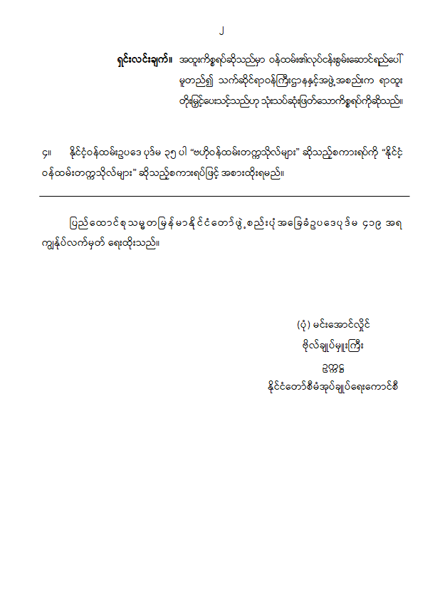 ဝန်ကြီးဌာန ကြေညာချက်များ