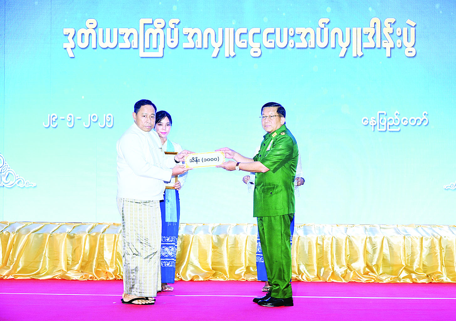 ဆက်လက်ပြီး စေတနာရှင်အလှူရှင်များ၊ တိုင်းဒေသကြီးနှင့် ပြည်နယ်အစိုးရအဖွဲ့များ၊ ဝန်ကြီးဌာနများ၊ အဖွဲ့အစည်းများက အလှူငွေများ ဆက်လက်ပေးအပ်လှူဒါန်းကြရာ အမျိုးသားသဘာဝဘေးအန္တရာယ်ဆိုင်ရာစီမံခန့်ခွဲမှုကော်မတီဥက္ကဋ္ဌ၊ နိုင်ငံတော်စီမံအုပ်ချုပ်ရေးကောင်စီဒုတိယဥက္ကဋ္ဌ ဒုတိယဝန်ကြီးချုပ် ဒုတိယဗိုလ်ချုပ်မှူးကြီး စိုးဝင်း၊ ကောင်စီတွဲဖက်အတွင်းရေးမှူး ဗိုလ်ချုပ်ကြီး ရဲဝင်းဦးနှင့် ကောင်စီဝင်များက အသီးသီးလက်ခံရယူပြီး ဂုဏ်ပြုမှတ်တမ်းလွှာများ ပြန်လည်ပေးအပ်ခဲ့ကြသည်။