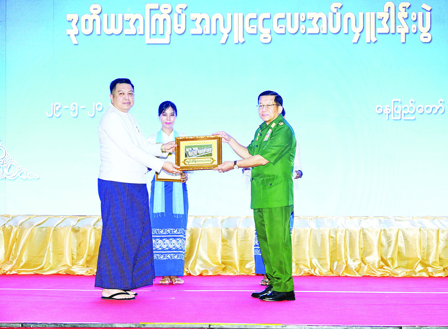 ထို့နောက် နိုင်ငံတော်စီမံအုပ်ချုပ်ရေးကောင်စီဥက္ကဋ္ဌ နိုင်ငံတော်ဝန်ကြီးချုပ်က အမှာစကားပြောကြားရာတွင် ၂၀၂၅ ခုနှစ်၊ မတ်လ (၂၈) ရက်တွင် ဖြစ်ပွားခဲ့သည့် မြေငလျင်ကြီးကြောင့် နေပြည်တော်အပါအဝင် တိုင်းဒေသကြီး၊ ပြည်နယ် (၁၀) ခုတွင် ထိခိုက်မှုရှိခဲ့ပြီး (၆) ခုတွင် ငလျင်ဒဏ်ကို ပြင်းထန်စွာ ခံစားခဲ့ကြရကြောင်း၊ ထိုကဲ့သို့ ဘေးဒုက္ခကြုံတွေ့နေရသည့် ပြည်သူများအတွက် စေတနာရှင်များက အလှူငွေများ ပေးအပ်လှူဒါန်းကြခြင်းဖြစ်သည့်အတွက် ယနေ့အခမ်းအနားသည် မင်္ဂလာရှိသည့် အခမ်းအနားပင်ဖြစ်ကြောင်း။