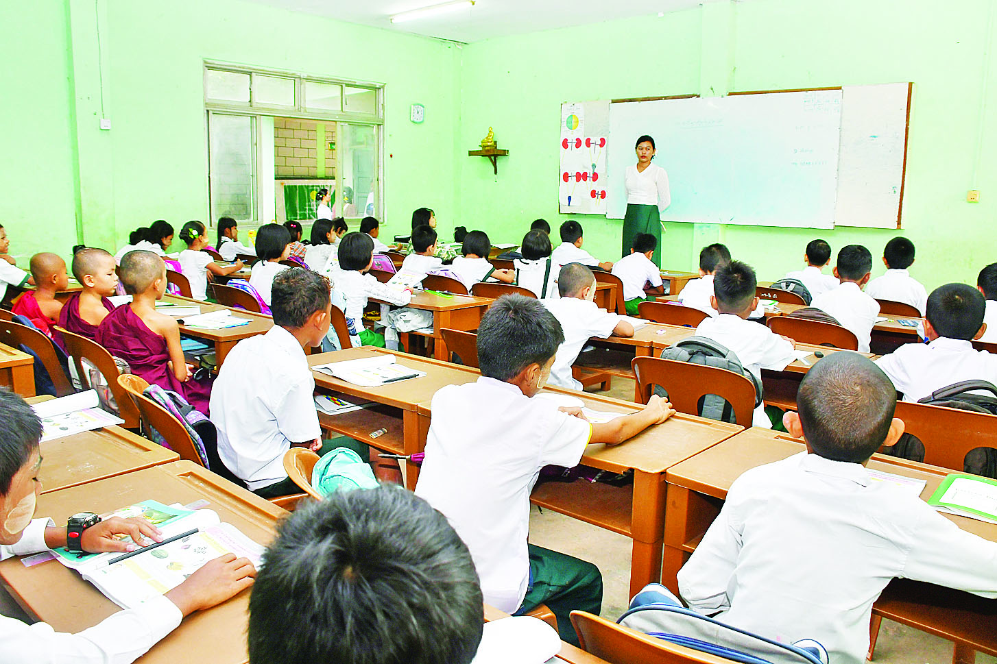 ၂၀၂၅-၂၀၂၆ ပညာသင်နှစ်အတွက် အခြေခံပညာကျောင်းများကို တစ်နိုင်ငံလုံးအတိုင်းအတာဖြင့် ယနေ့တွင် စတင်ဖွင့်လှစ်ရာ ပြည်ထောင်စုနယ်မြေ နေပြည်တော်ရှိ အခြေခံပညာကျောင်းများတွင်လည်း ကျောင်းသား ကျောင်းသူများ စိတ်အေးချမ်းပျော်ရွှင်စွာ သတ်မှတ်အချိန်ဇယားများအတိုင်း ပြဋ္ဌာန်းဘာသာရပ်များကို သင်ကြားလျက်ရှိသည်။