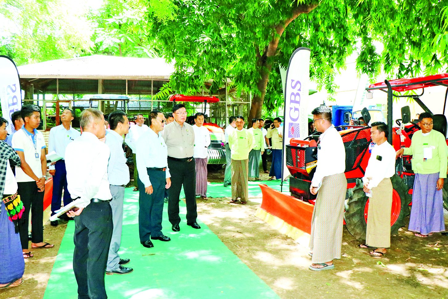 ယင်းနောက် ခင်းကျင်းပြသထားသော လယ်ယာသုံးစက်ကိရိယာအမျိုးမျိုး၊ မျိုးစေ့များ၊ သွင်းအားစုများကို ကြည့်ရှုအားပေးသည်။