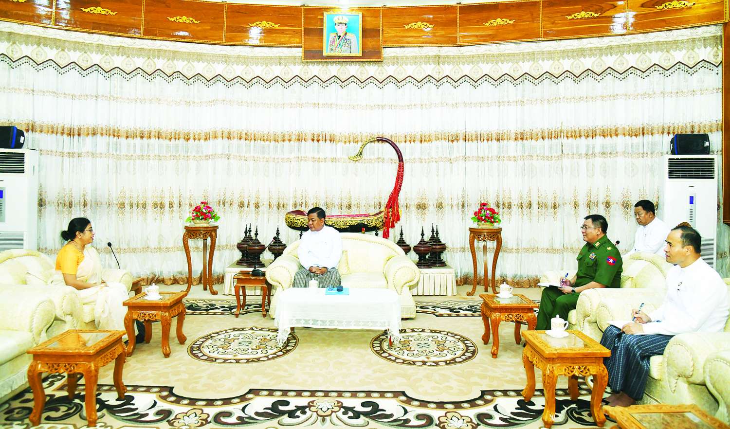တွေ့ဆုံပွဲသို့ ဒုတိယဝန်ကြီးချုပ်နှင့် ကာကွယ်ရေးဝန်ကြီးဌာန ပြည်ထောင်စုဝန်ကြီးနှင့်အတူ တာဝန်ရှိသူများတက်ရောက်ကြကြောင်း သတင်းရရှိသည်။