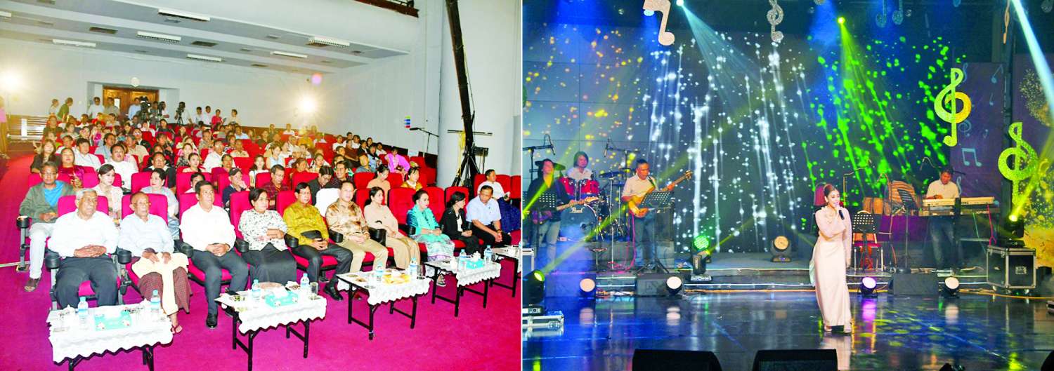 တေးဂီတဖျော်ဖြေပွဲမစတင်မီ ပြည်ထောင်စုဝန်ကြီး ဦးမောင်မောင်အုန်းက မြန်မာနိုင်ငံ ဂီတနေ့အထိမ်းအမှတ် ဂုဏ်ပြုလက်ဆောင်မွန်အဖြစ် ကျောက်စီပန်းချီကားကို မြန်မာနိုင်ငံဂီတအစည်းအရုံး(ဗဟို) ဥက္ကဋ္ဌ ဦးလွင်မြင့်ထံ ပေးအပ်သည်။