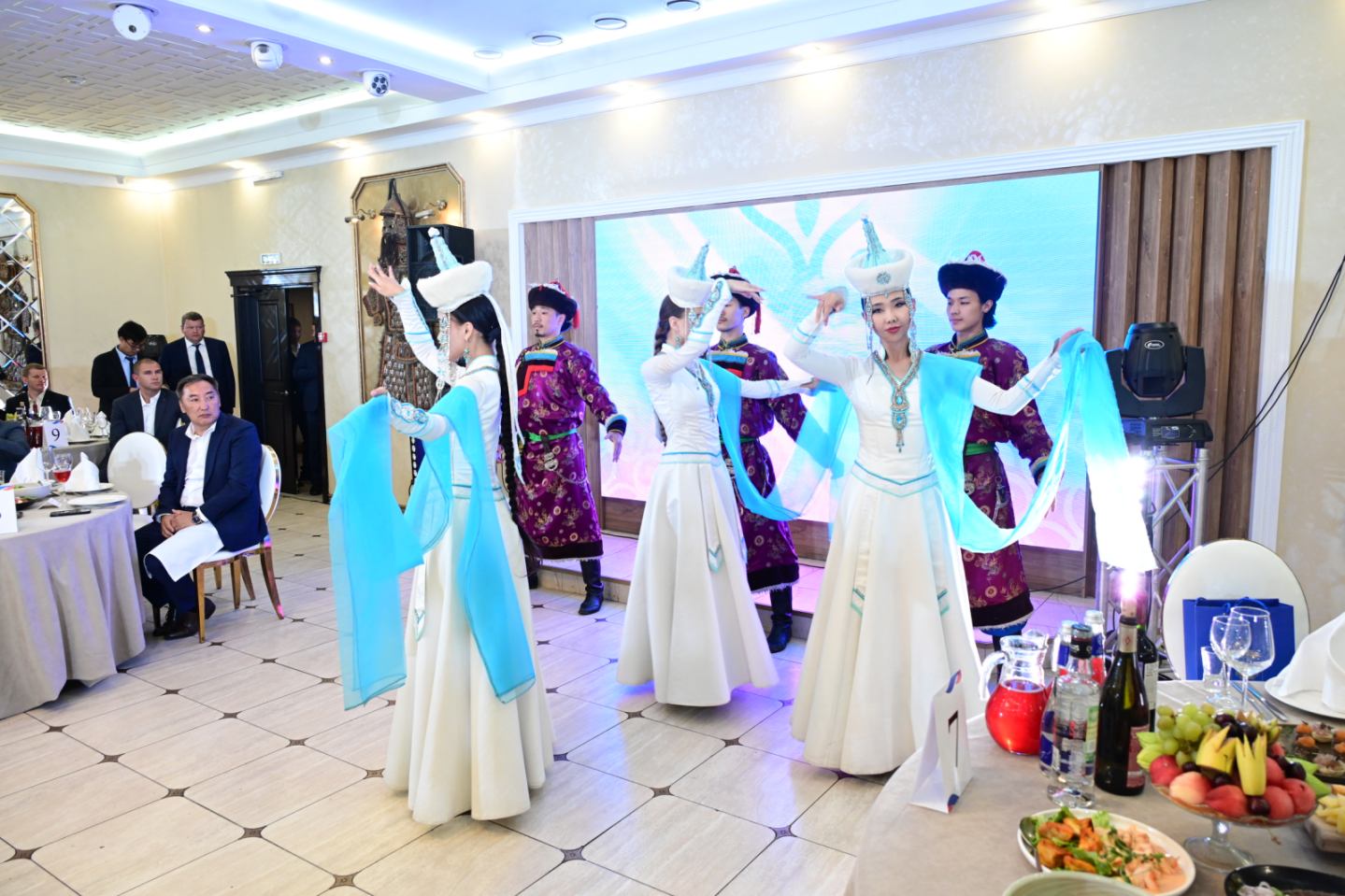 ညစာသုံးဆောင်နေစဉ်အတွင်း Buryatiaပြည်နယ်၊ အမျိုးသားကဇာတ်ရုံမှ ရိုးရာအကအလှအဖွဲ့များက တေးသံသာများ၊ အကအလှများဖြင့် ဖျော်ဖြေတင်ဆက်ခဲ့ကြကြောင်း သတင်းရရှိသည်။
